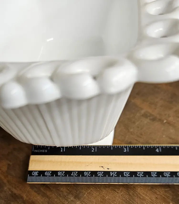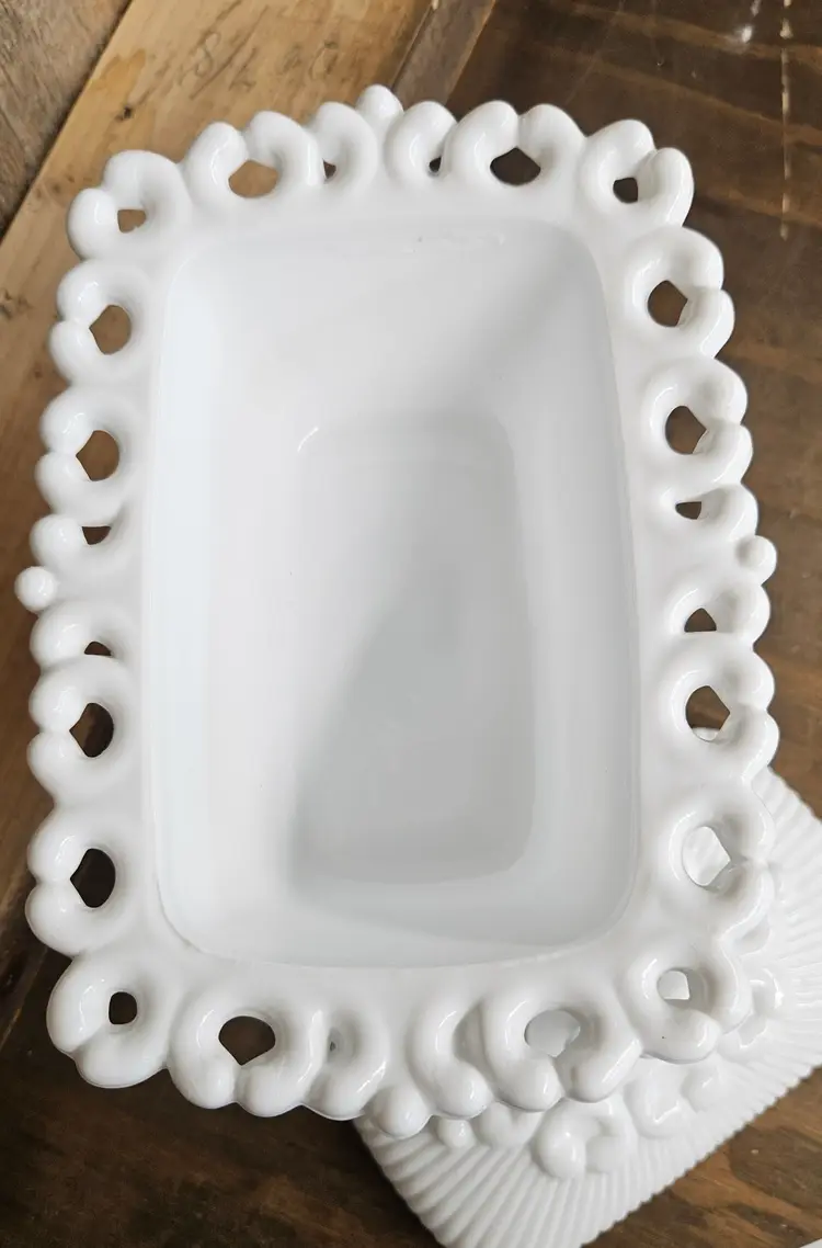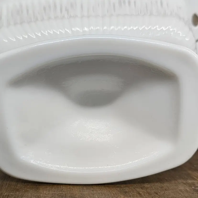 This dish is in Good, Pre-owned condition, showing minimal wear from age and previous use. Note**There is a chip on the underside corner lace of the dish, that is shown in the photos. I also included a photo that the chip isn't seen from the upside corner. It doesn't appear to compromise the use of this dish.