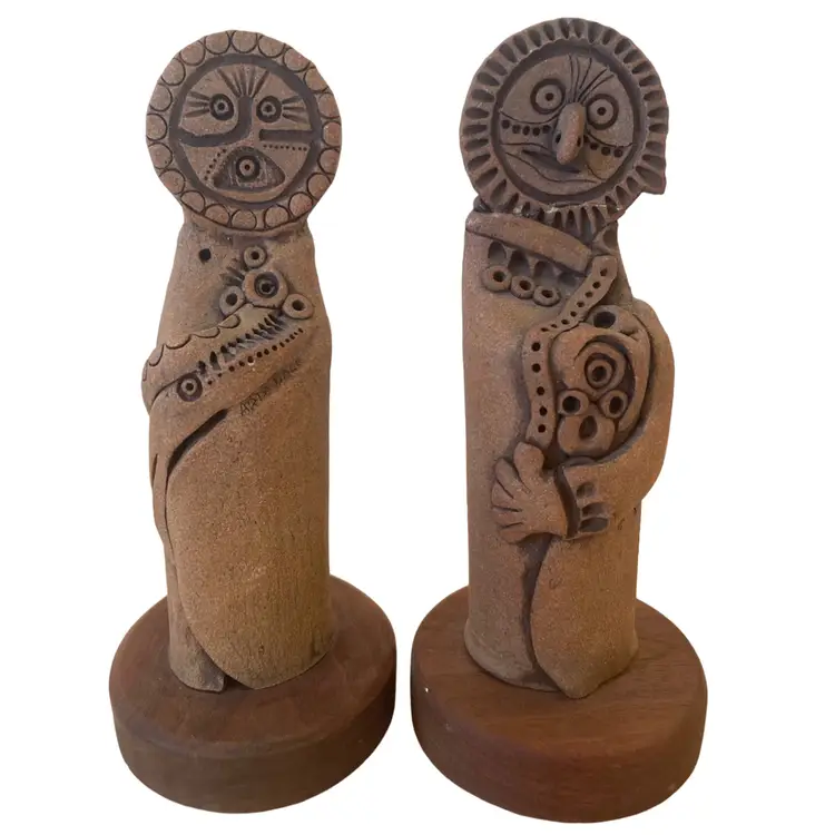 I have done loads of research on these and come up with no real info. I’m sure they are Australian indigenous clay pieces The objects depict the mystical spirit that tell story’s.