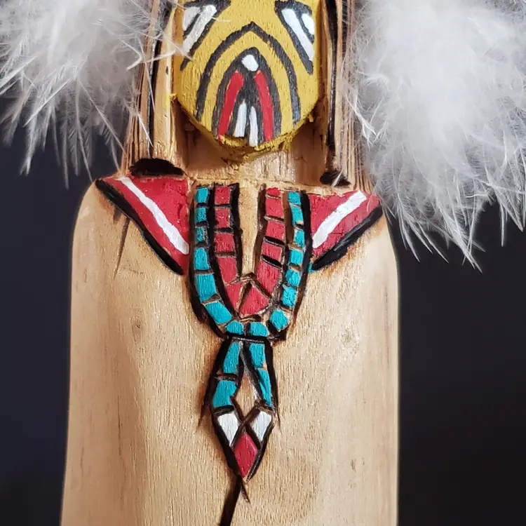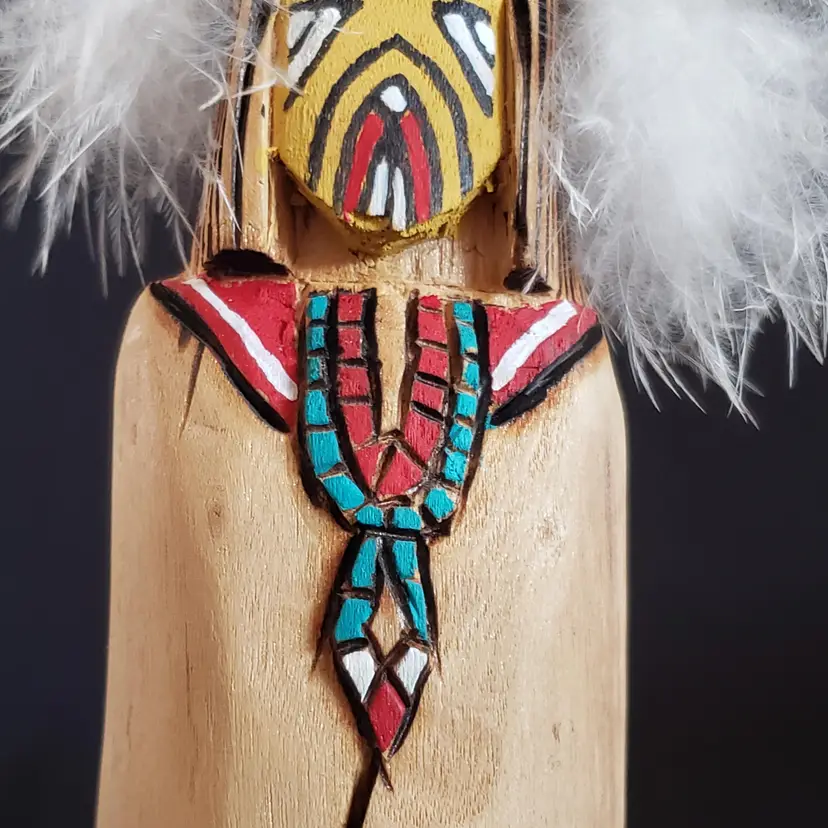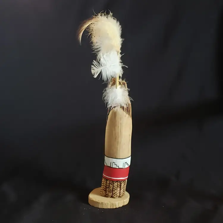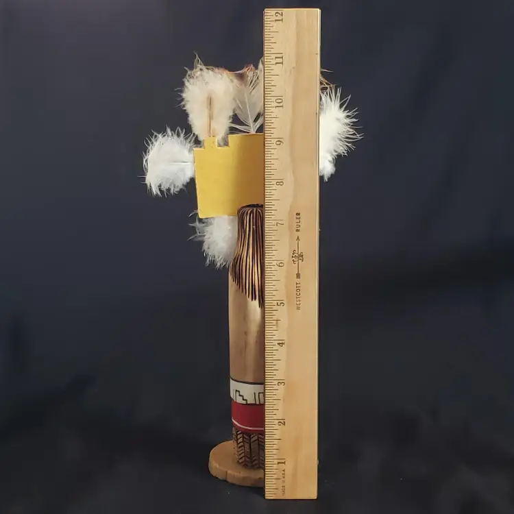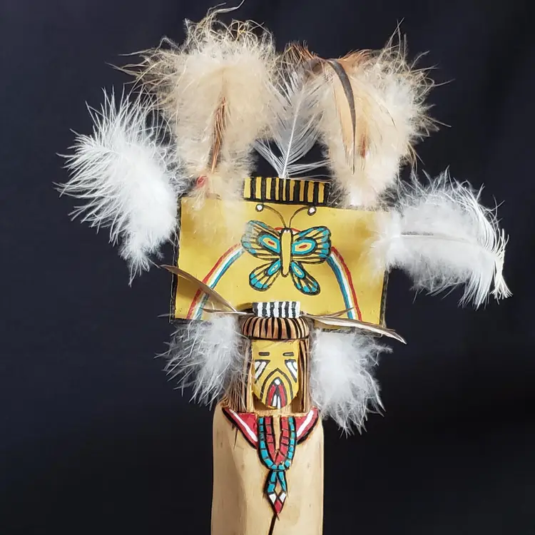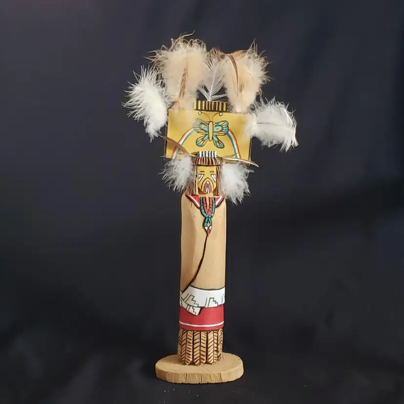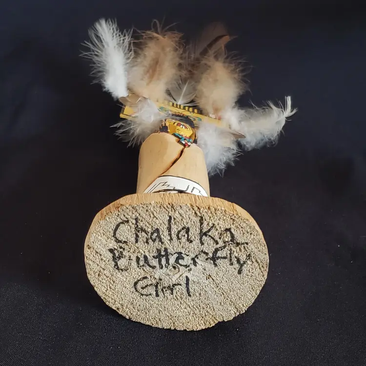 Indigenous Native Kachina Doll Signed Chalaka Butterfly Girl 11" tall approximately Wood and Feathers. Used condition with damaged feathers, may be missing a small piece under the chin, etc. Please view all the photos and read the entire item description and please ask any questions prior to purchase when possible and please ask any questions prior to purchase when possible.