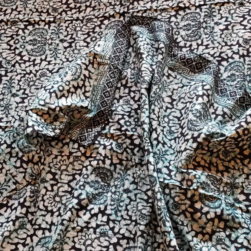 Vintage Indonesian Batik Fabric 100% Cotton 90” x 41” approximately Batik Halus New with Sticker. Please view all the photos and read the entire item description and please ask any questions prior to purchase when possible. Shipping with USPS Ground Advantage. (588) Will be shipped folded. Thank you for looking