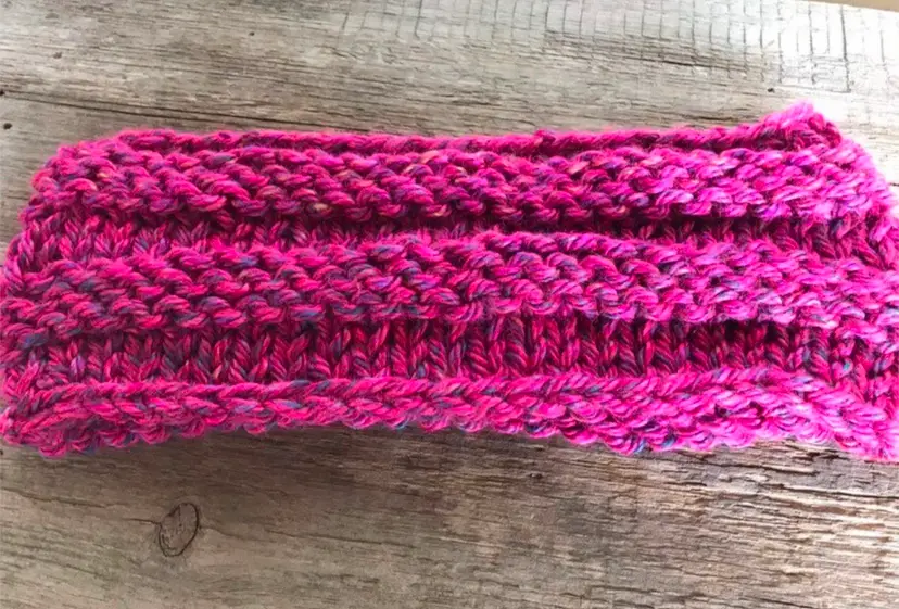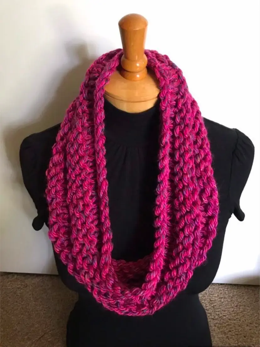 Infinity Cowl hand knit pink scarf, super soft, 5”-6” wide and 28”-30” around not stretched.