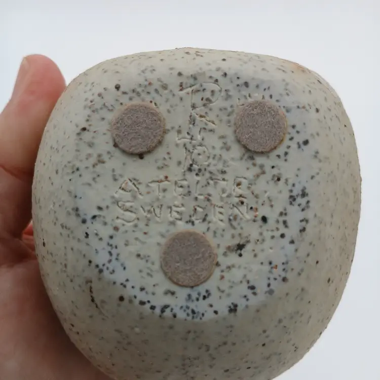 Inger Persson's artistry includes a many ceramic pieces. She is particularly well known for her vast and diversified production of wall plaques. They have a great range of shapes, sizes, and decors. She designed wall plaques for the Swedish Rorstrand Company in the 1960s.