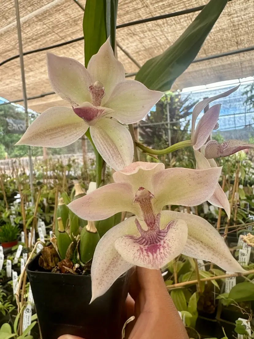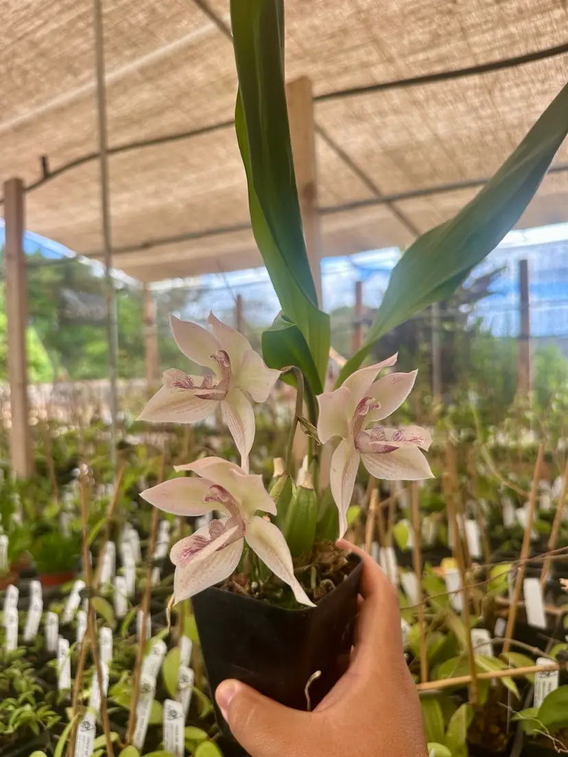 Plant is actively growing in orchid bark in a 4” pot. Plants in spike or blooming now! They have a lovely , delicate fragrance.
