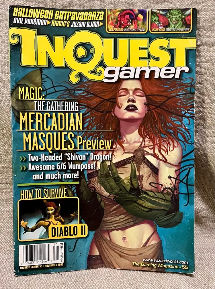 This is an InQuest Gamer Magazine #55 from November 1999, focusing on Halloween Extravaganza and featuring Evil Pokémon and Magic in the fantasy genre. Published by Wizardworld, the magazine is in English and has a monthly publication frequency. The product is a one-time paid circulation item from the United States, providing content related to games and fantasy topics for fans and enthusiasts.