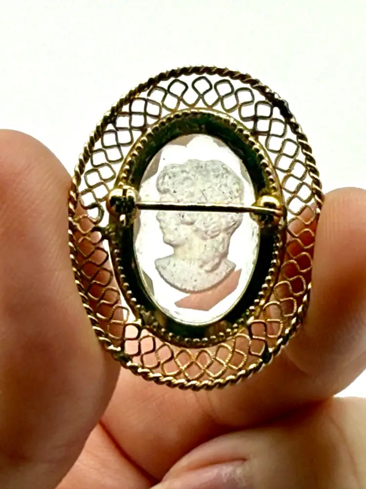 Intaglio Cameo Brooch Pin. 1.5” small areas of tarnish