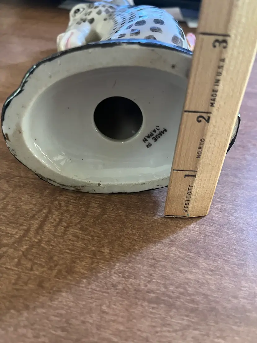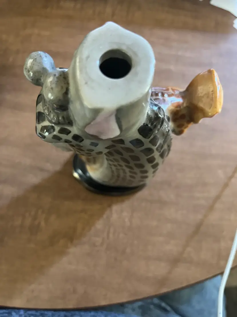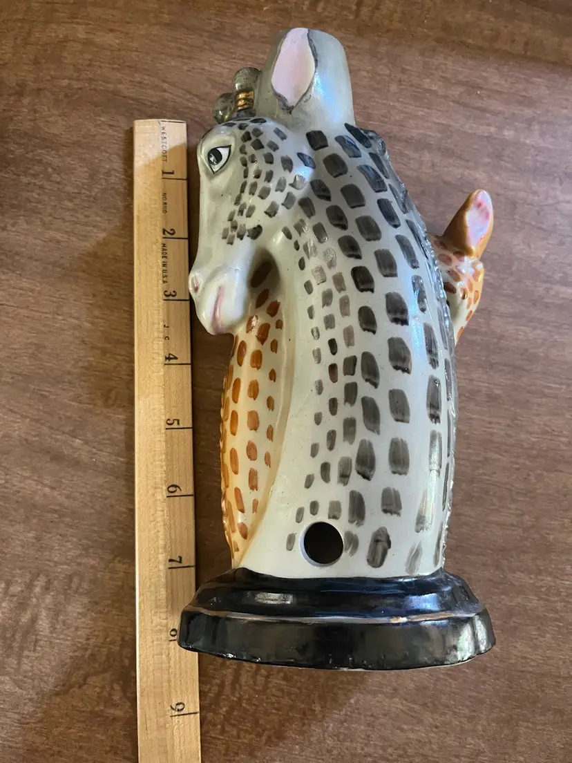 Measuring approximately 8 inches in height and just under 3 inches in width, this medium-sized figurine is perfect for a tabletop lamp base (with appropriate supplies to complete this project) or as a stand-alone piece of art. The matte finish and all-over pattern make it a unique addition to your collection of decorative collectibles. This item is not customized and is not signed.
