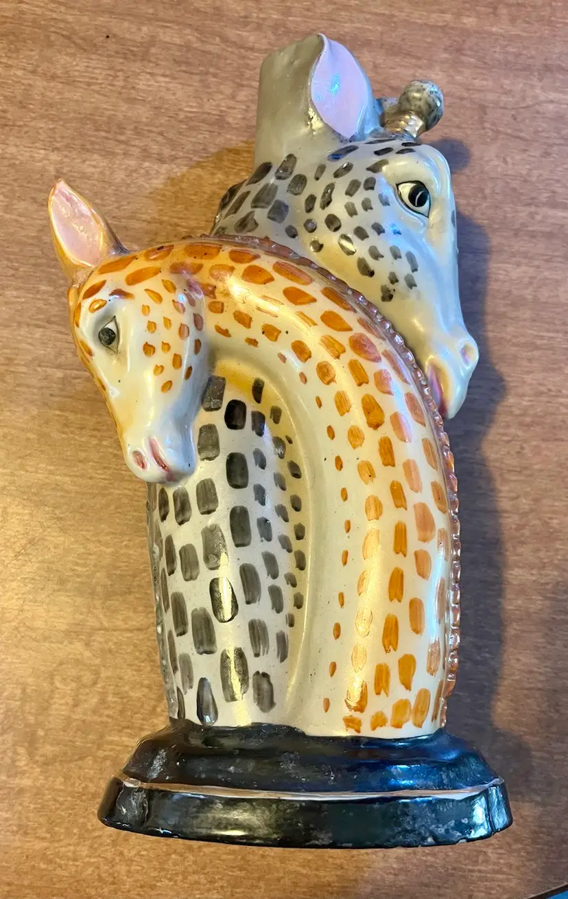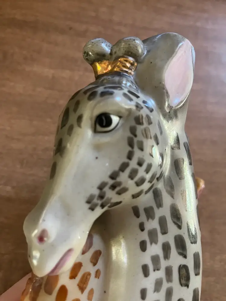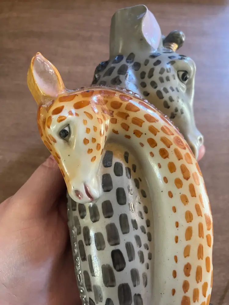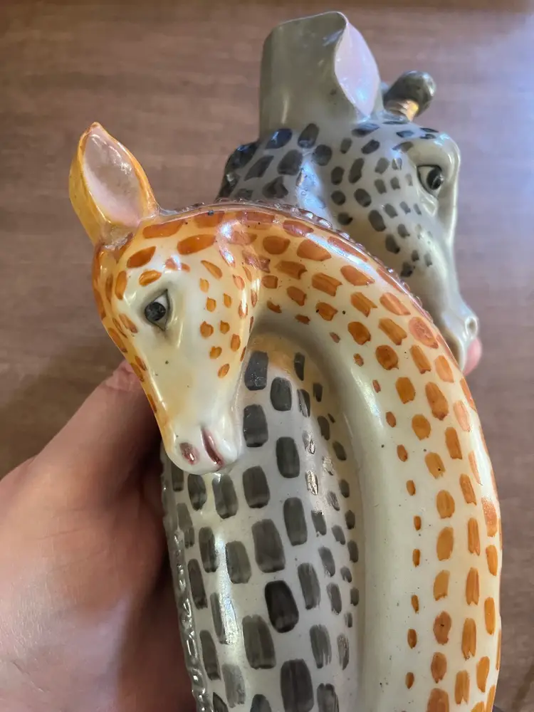 Your home decor is awaiting this beautiful Intertwined Giraffe Ceramic Matte Glaze with Ossicones Gold Gilded Figurines Lamp Base. Crafted in Japan the figurine features a savanna animal the giraffes as the main subject.