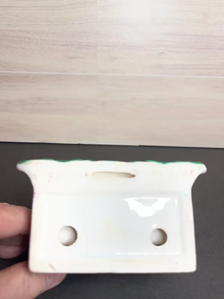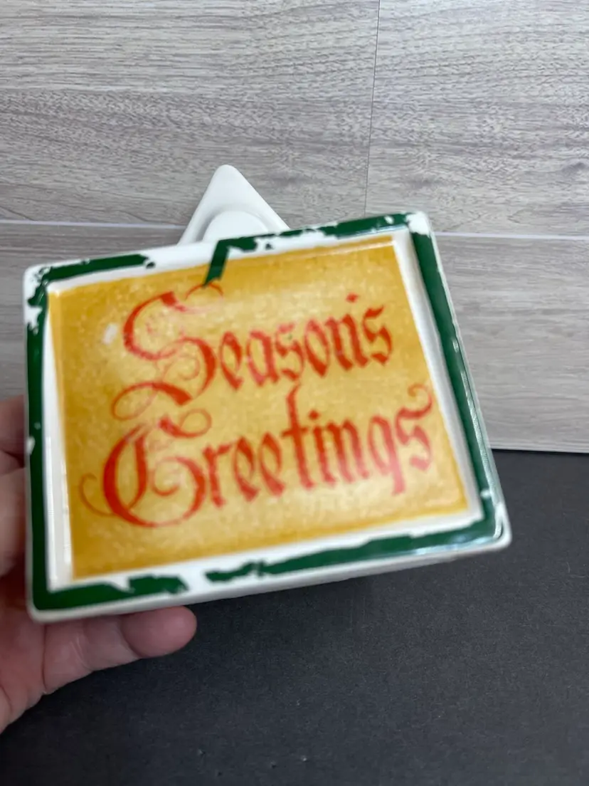 5” tall, 4.5” wide, 2.25” deep. Stamped Holt Howard 1961 on bottom, front is in perfect condition the back is a little rough, has cold paint loss and fading please see photos.