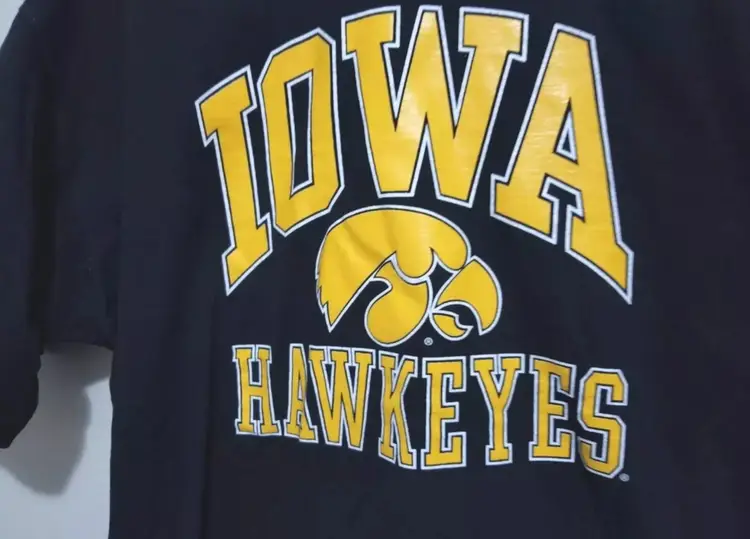 Fruit of the loom lofteez t shirt with Iowa Hawkeyes and logo on front, shirt is in good condition and a heavy t shirt. Tag dayes it around 2006