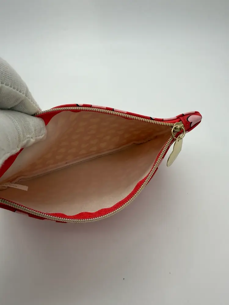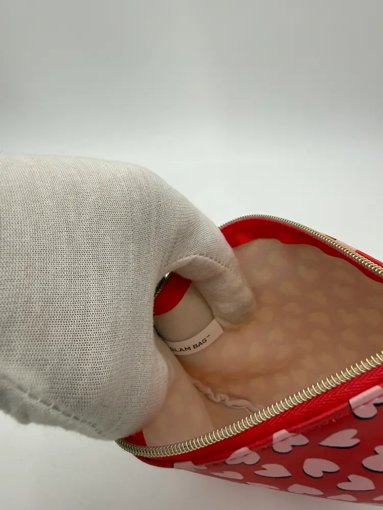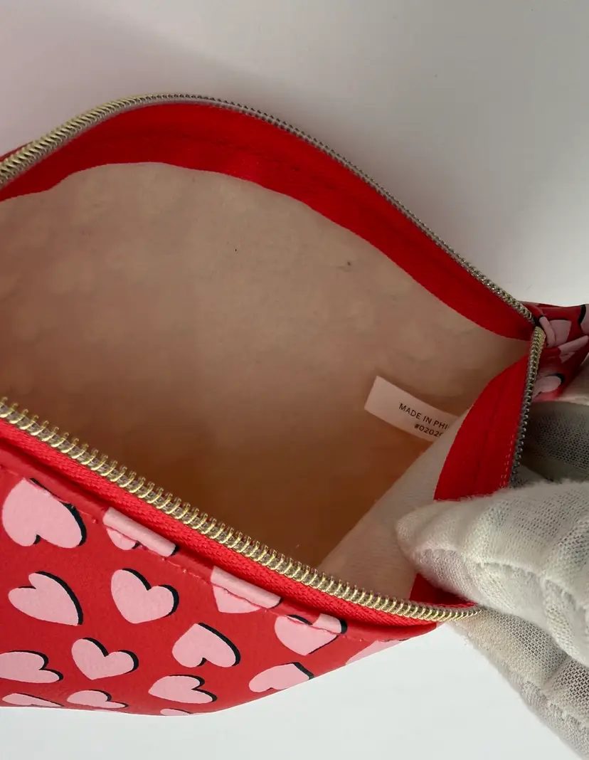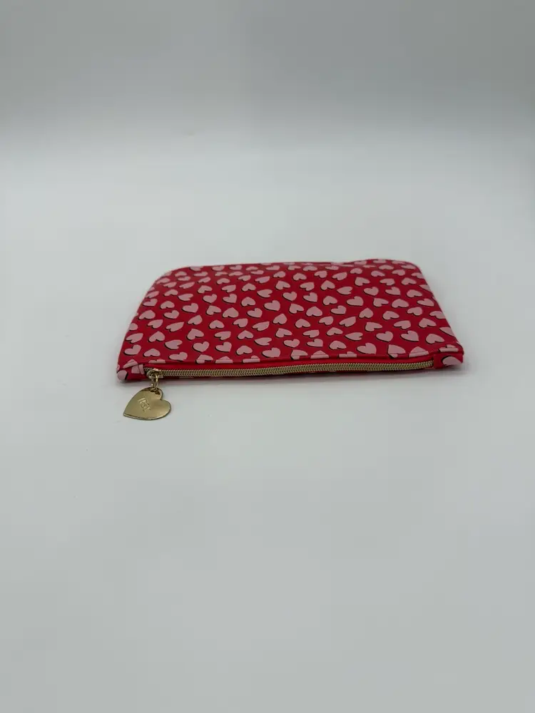 This is an EPSY collectible from the Valentines February 2022 Glam Bag Collection. Made of Faux Leather. It is Solid Red with Cascading Pink Hearts patterns. Featuring a Gold Tone Ipsy Heart Charm and Zipper. This Glam Bag is Approximately 7” X 5.” New, Unused Condition.