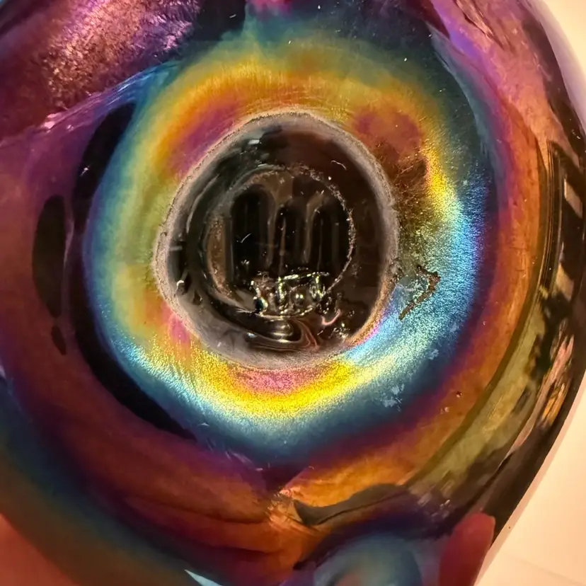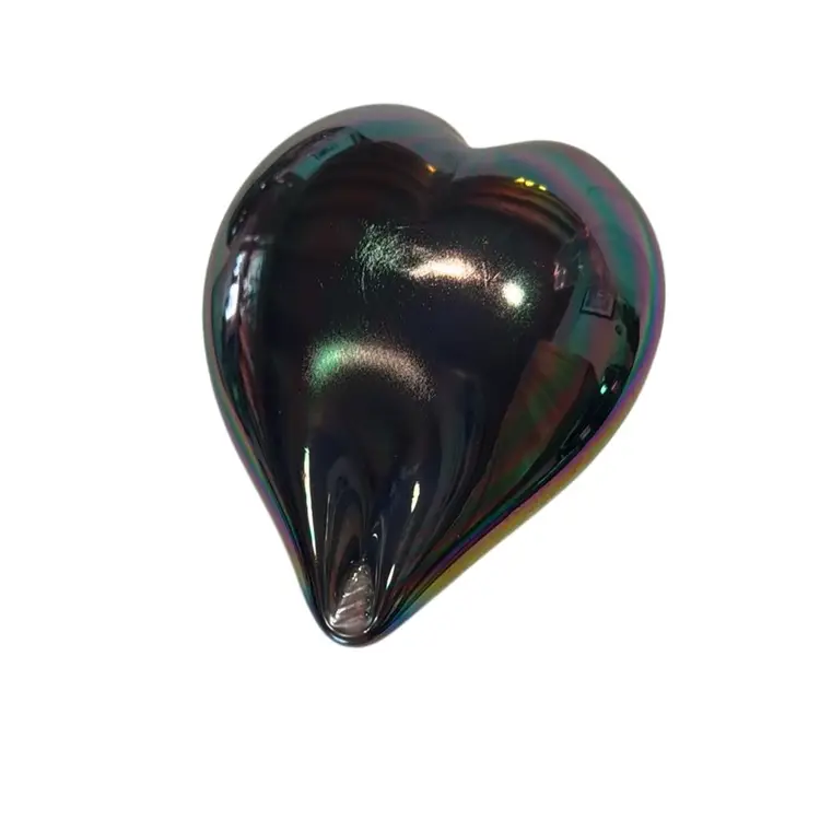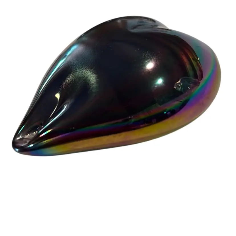 Iridescent Art Glass Heart Paperweight - Whodunnit? Etched “97” And Stamped On Base - 5”