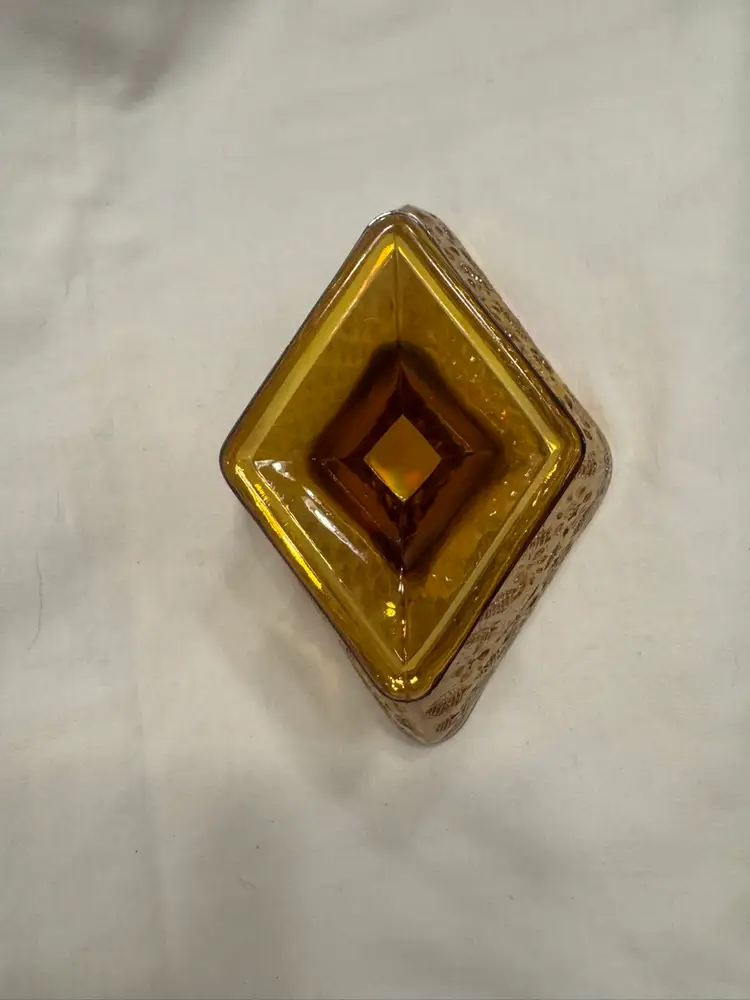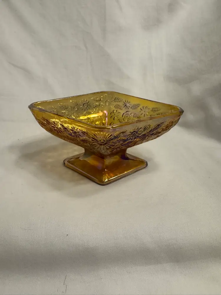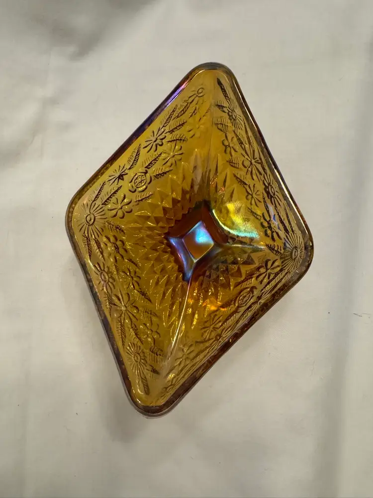 Iridescent Diamond Shaped Carnival Glass Footed Dish 4”x6”