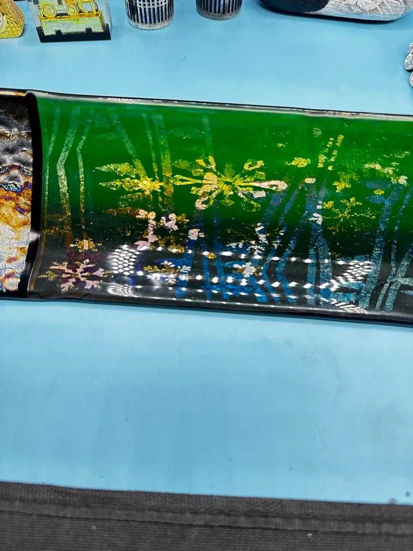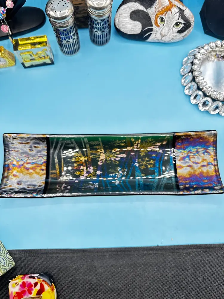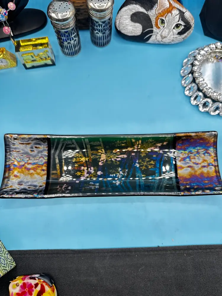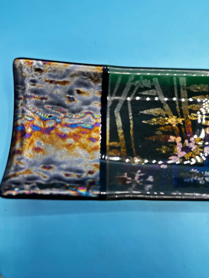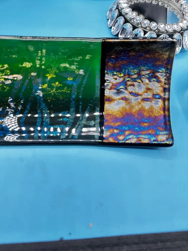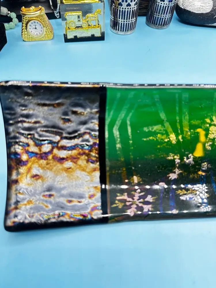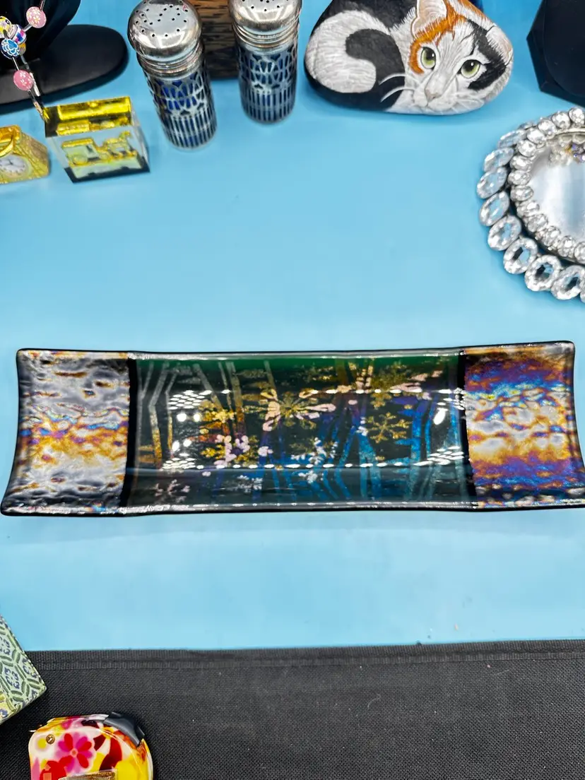 Iridescent Fused Glass rectangle tray. Beautiful, no chips or cracks. 13”.