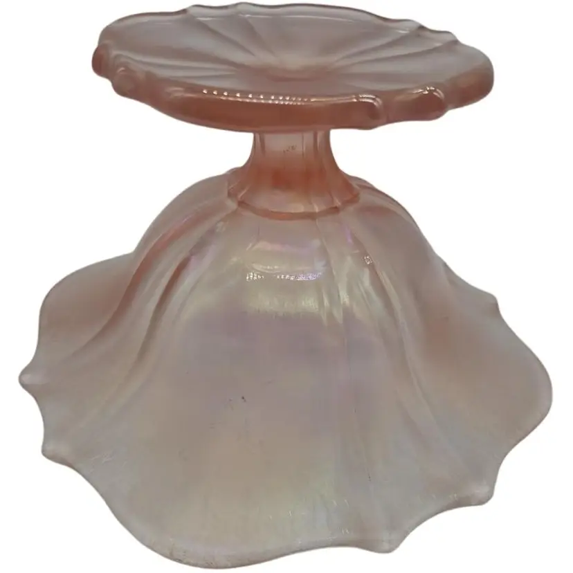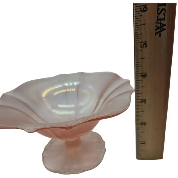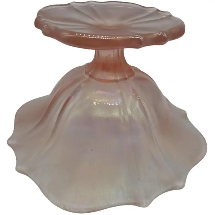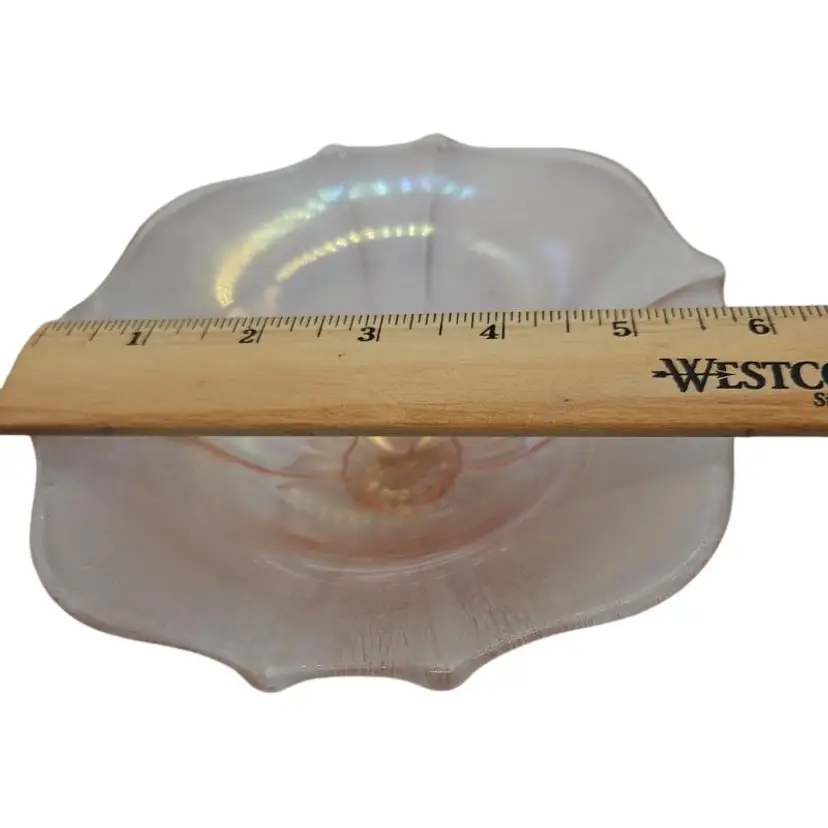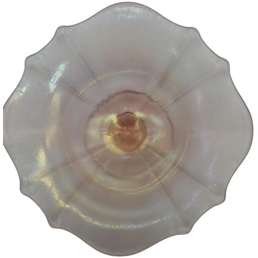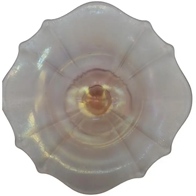 This stunning iridescent carnival glass bowl features a delicate scalloped edge and a mesmerizing shimmer. Perfect for adding a touch of vintage charm to your home decor or as a unique centerpiece. A beautiful addition for any glassware enthusiast!