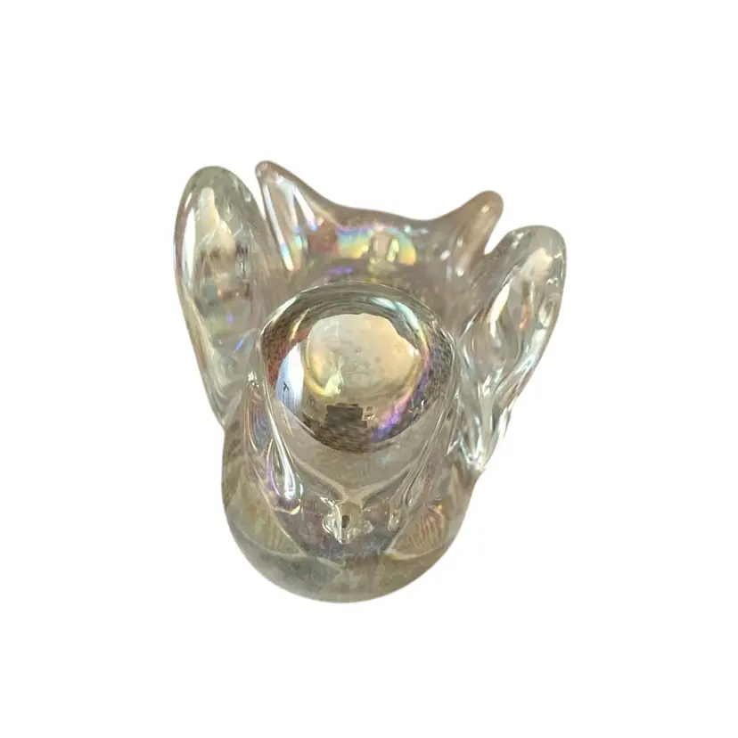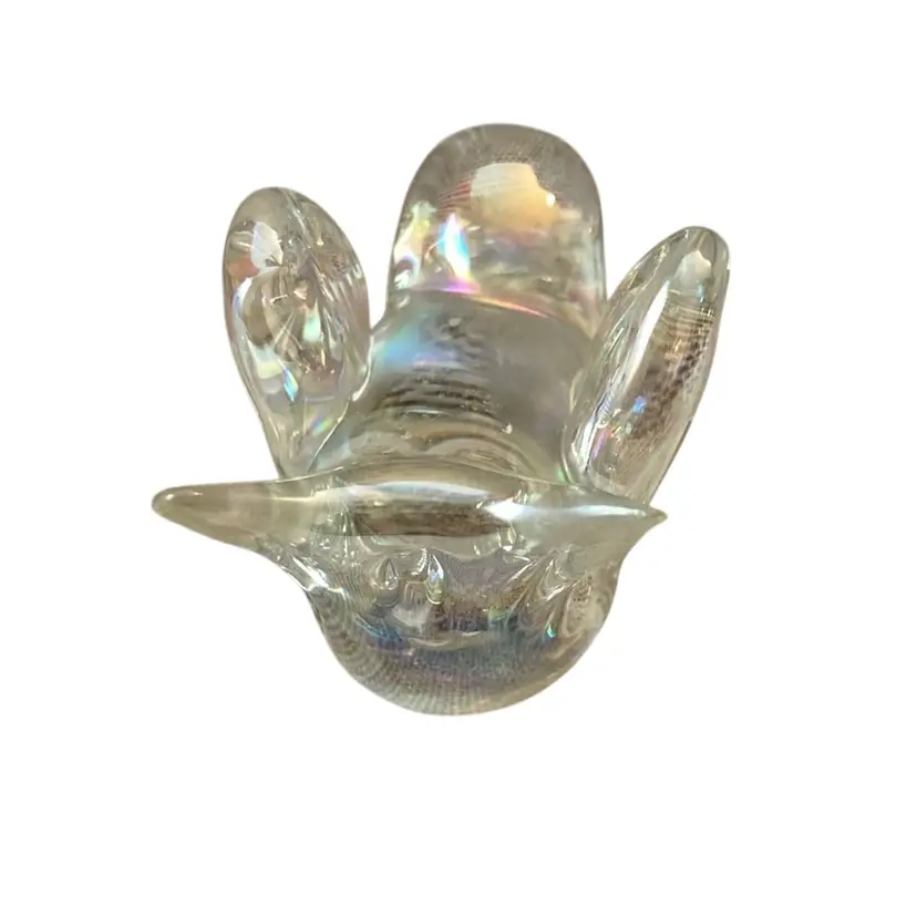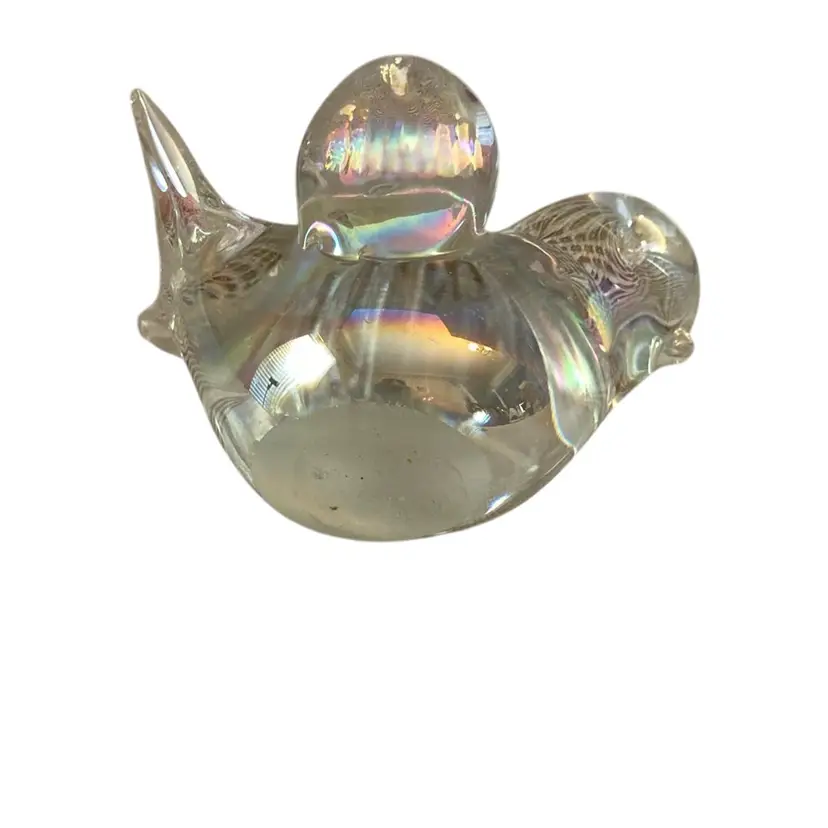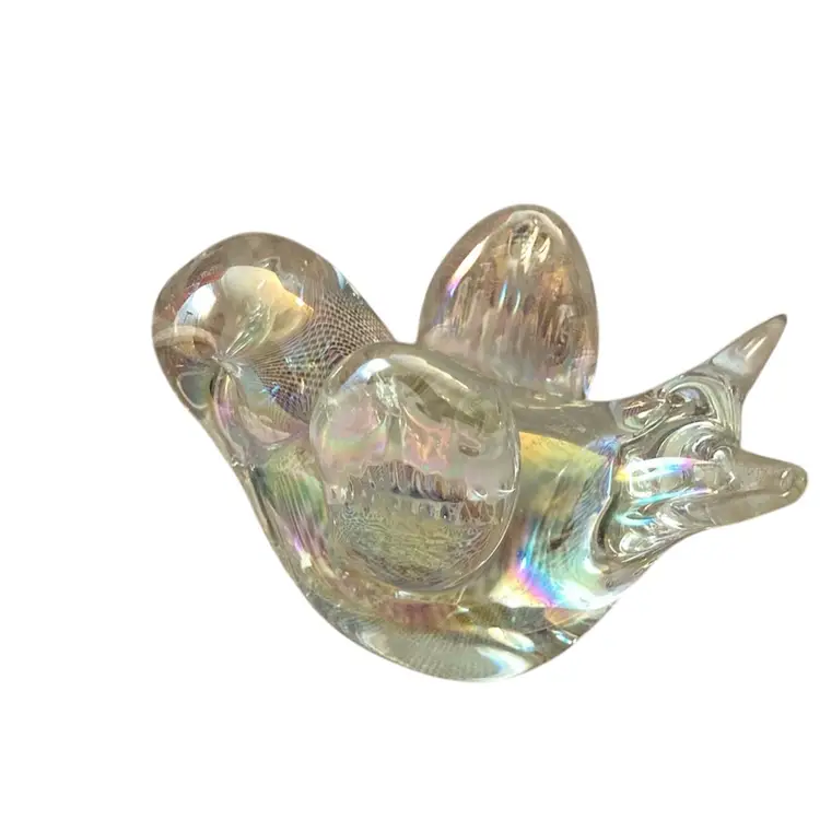 3.5” x 2” art glass bird has a beautiful iridescence. In perfect condition.