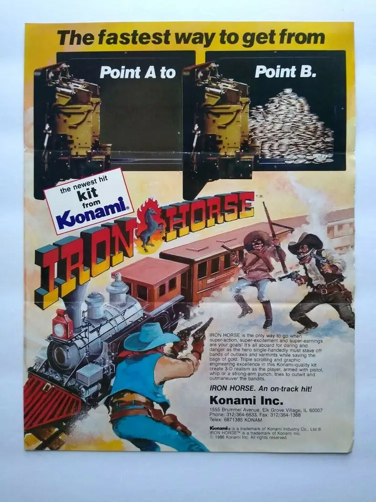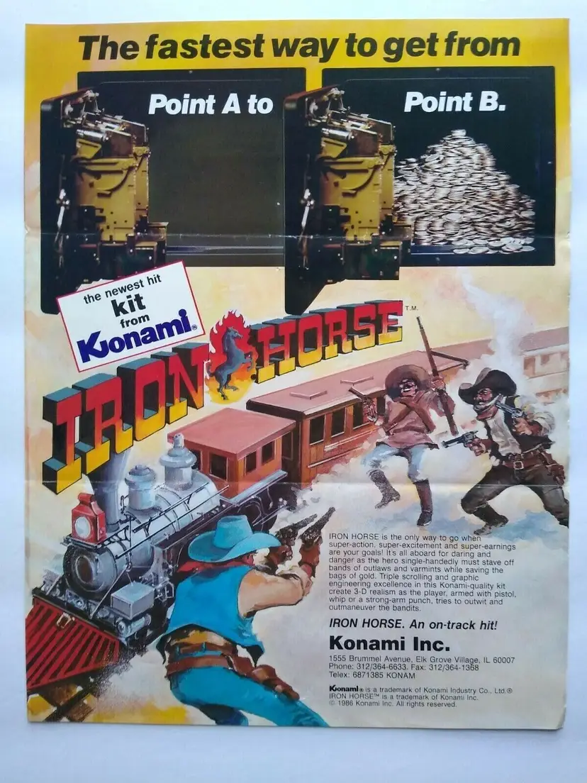 Arcade: Flyer Modified Item: No Country/Region of Manufacture: United States Original/Reproduction: Original Year: 1986 Game Title: Iron Horse Brand: Konami Theme: Western