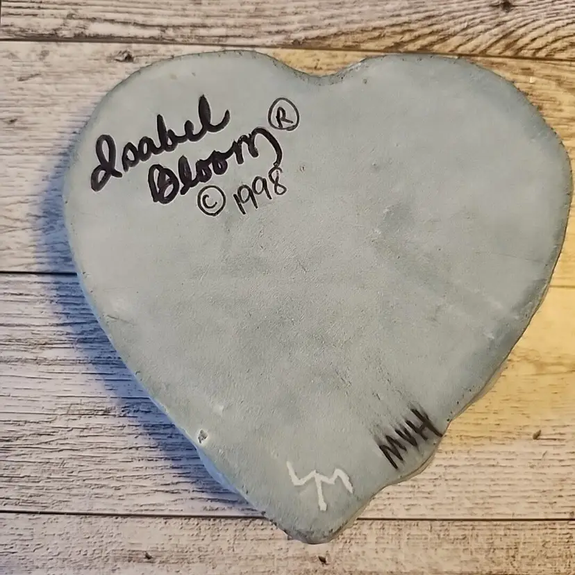 – Artist: Isabel Bloom – Shape: Heart – Signed By: Isabel Bloom – Occasion: All Occasions – Size: Small – Year Manufactured: 1998 – Additional Parts Required: No – Department: Adults – Number in Pack: 1 – Style: American – Features: Handmade, Signed And Dated – Finish: Painted – Room: Any Room – Handmade: Yes – Pattern: Hearts – Signed: Yes – Color: Gray – Material: Concrete – Subject: Girl – Brand: Isabel Bloom – Type: Sculpture – Customized: No – Theme: Art – Original/Reproduction: Original – Collection: Love – Time Period Manufactured: 1990-1999 – Country/Region of Manufacture: United States – Character Family: Birds
