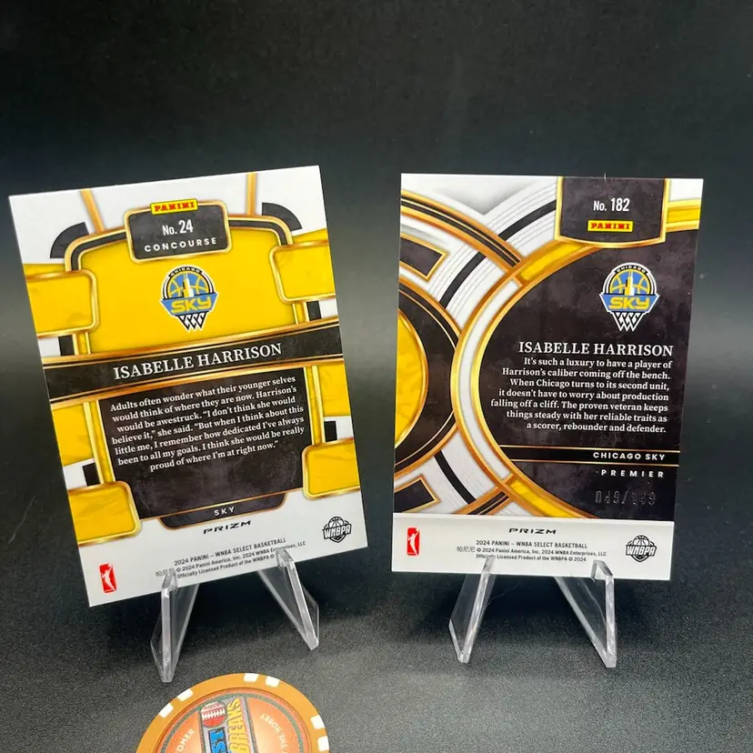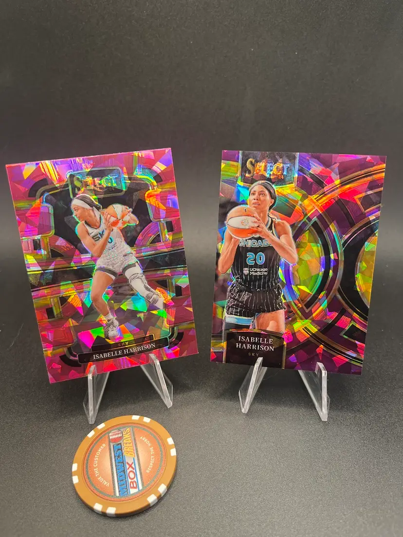 Two Isabelle Harrison cards from 2024 Select *concourse level Pink Ice *premiere level pink/purple ice #49/149