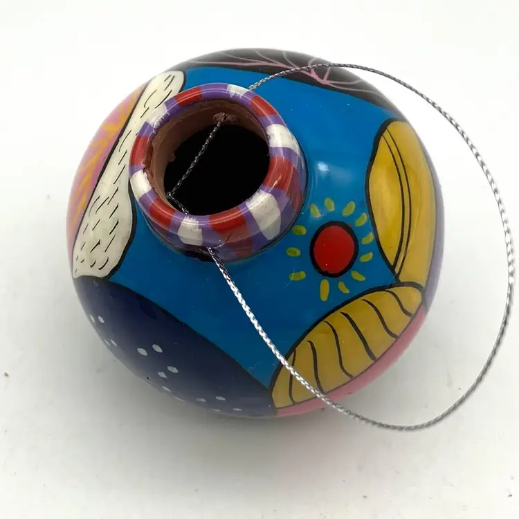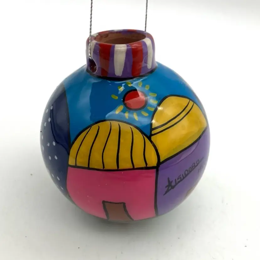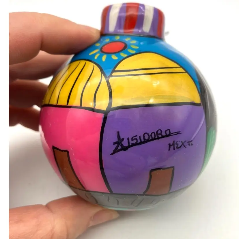 BIN - Isadora Mexico Colorful Hand Painted Pottery Holiday Ornament 3”