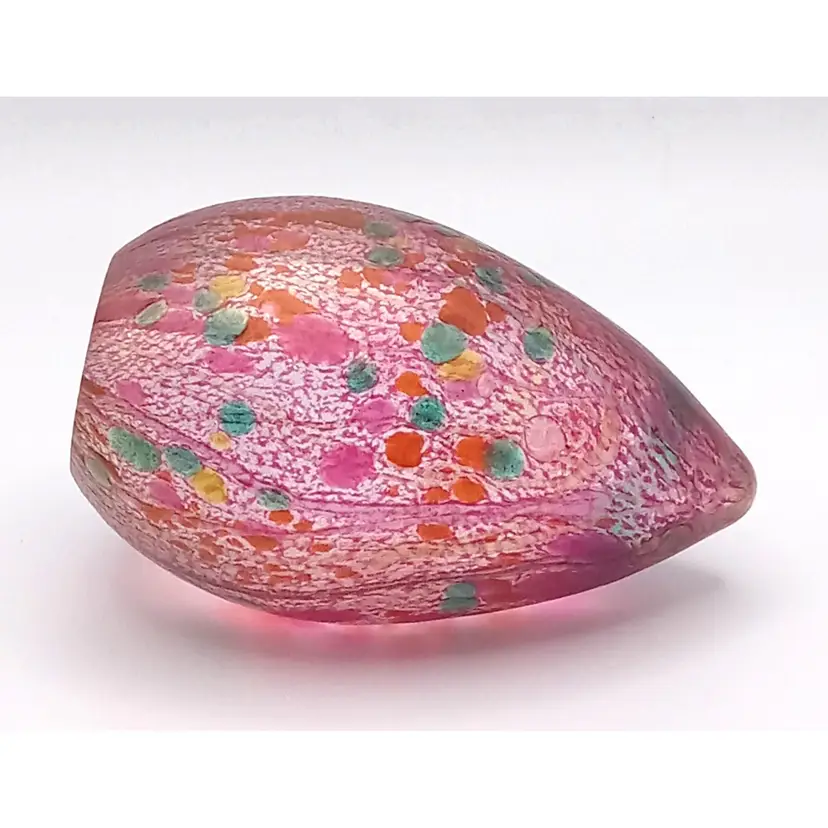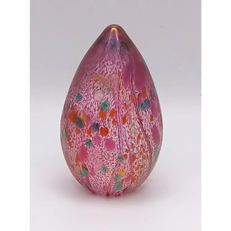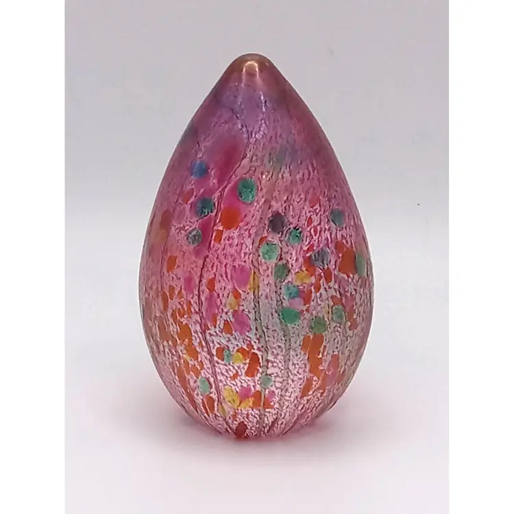 This pre-owned paperweight is 2 3/4 inches tall and 2 inches wide. It has the original sticker and is in excellent condition.