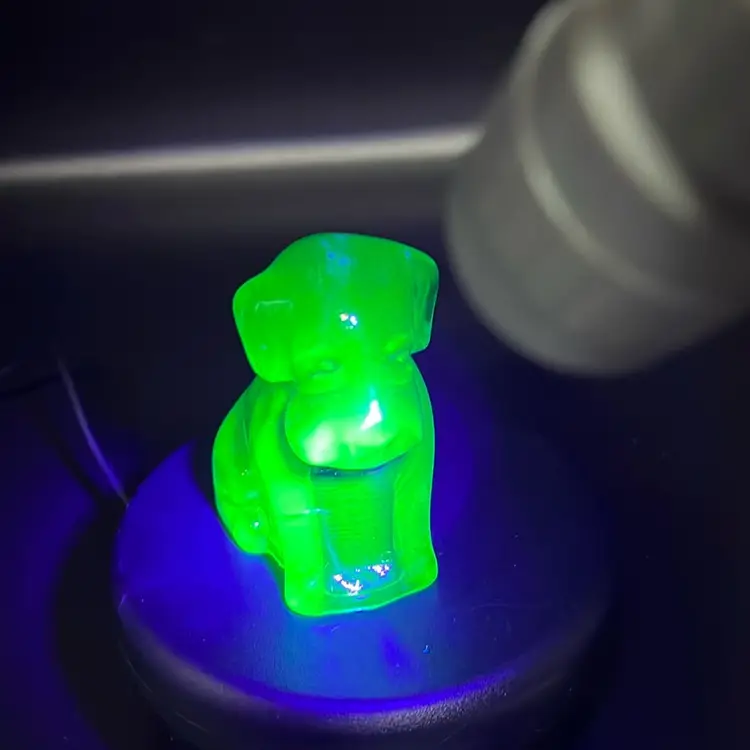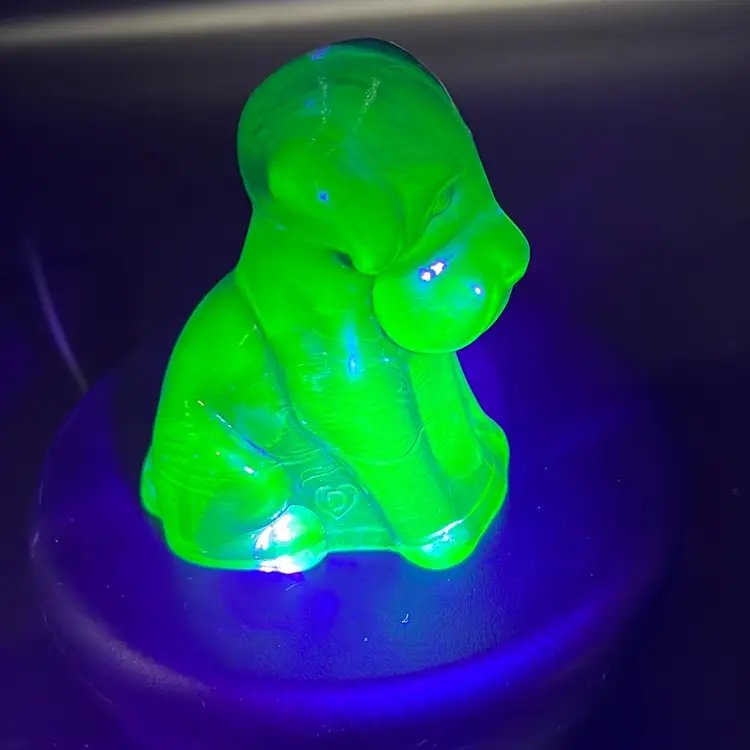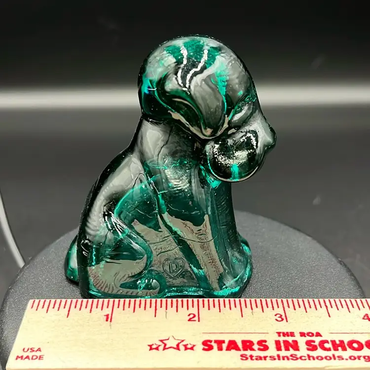 It Glows!!! A common glass maker's mark featuring a "D" in the middle is from the Degenhart company, with a "D" inside a circle (1967-1972) or a "D" inside a heart (1972-1978).