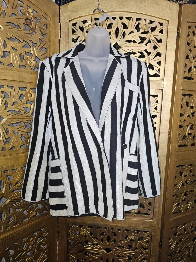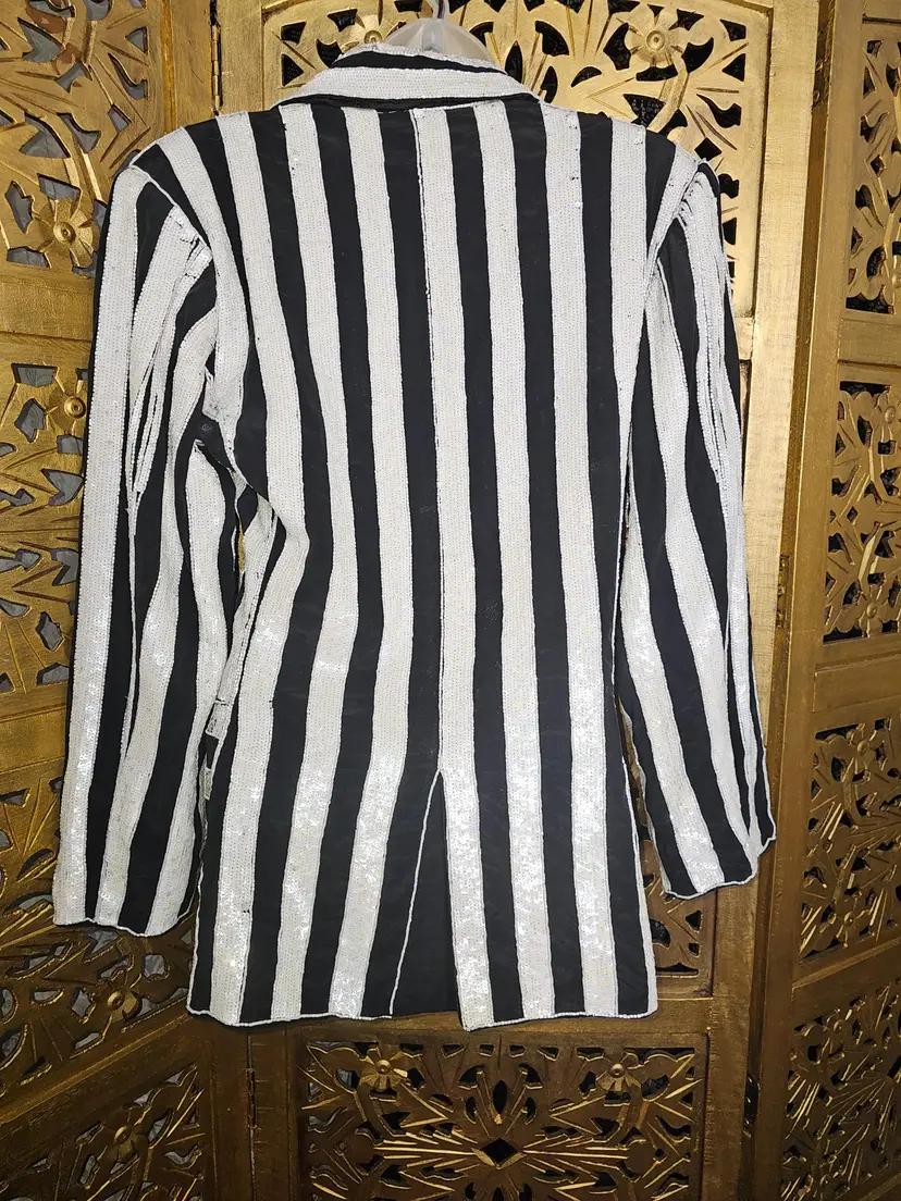 1970s/80s Black and White Silk & Sequin blazer by Ecstasy