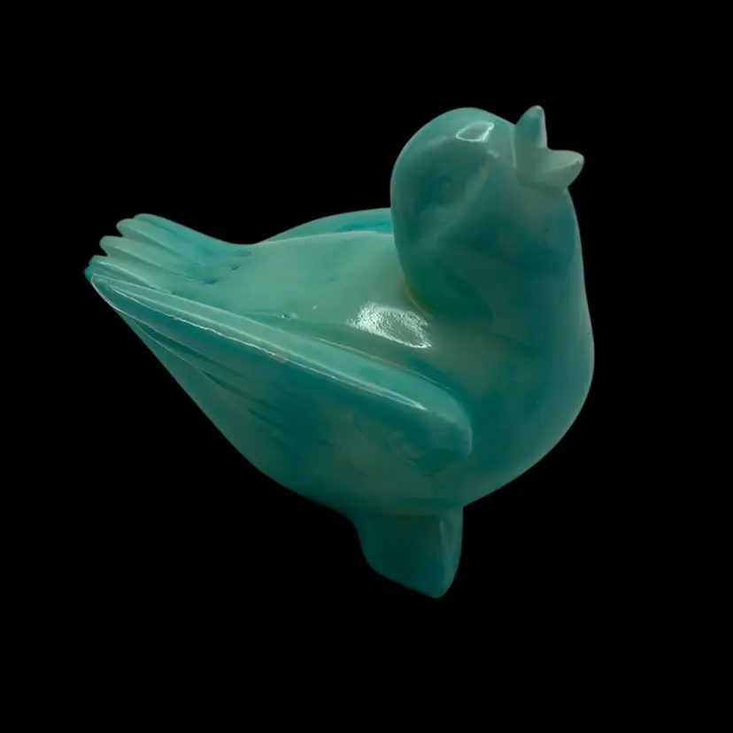 Featuring a milky glass appearance with a distinct opaque blue green color. Made in Italy and in mint condition!