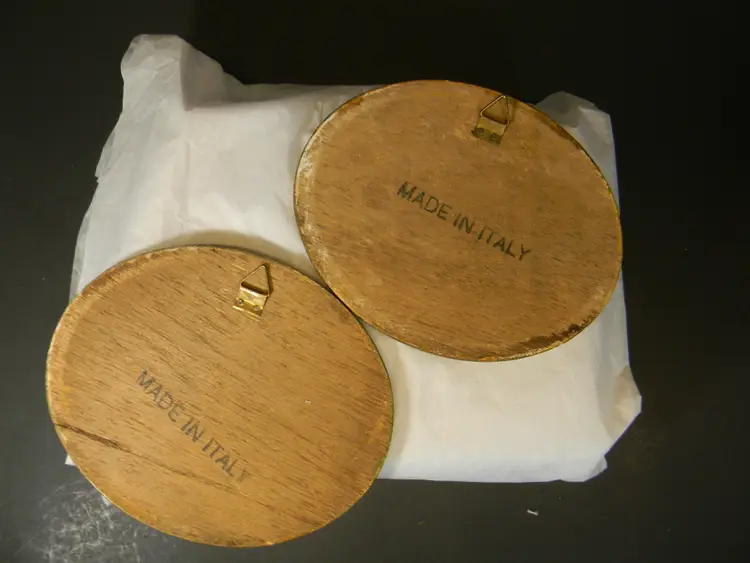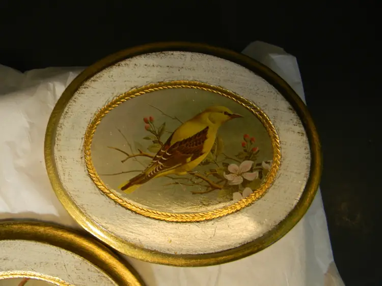 Wooden Plaques with birds on them hangers on the back so you can hang them on the wall Made in Italy used condition please look at all pictures before purchasing