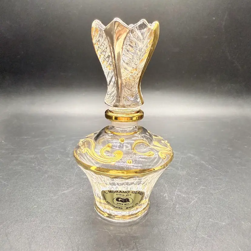 Keywords: Italy, Hand Painted, Clear, Crystal, GM, 24K, Labeled, Marked, Embossed, Applied, Elegant, Classic, European, Vanity, Makeup, Bathroom, Get Ready, Eau De Parfum, Body Spray, Decorative, Home, Gift, Present, Birthday, Christmas, Mother's Day, for Her, Gift for Girl