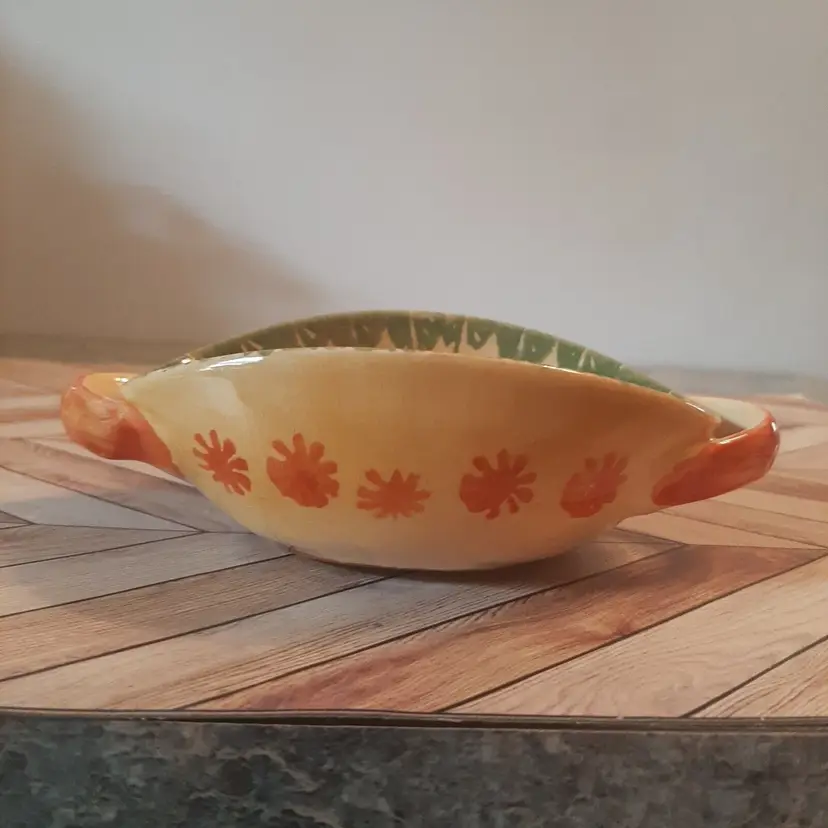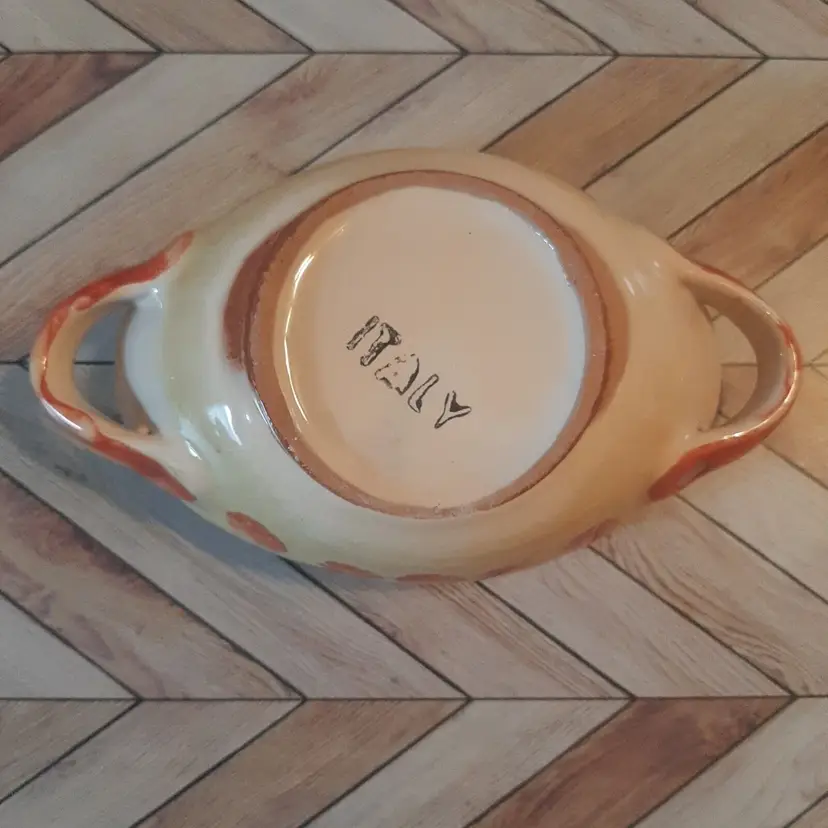 – Features: Hand Painted – Custom Bundle: No – Department: Adults – Handmade: Yes – Production Technique: Pottery – Number of Items in Set: 1 – Occasion: All Occasions – Vintage: Yes – Country/Region of Manufacture: Italy – Origin: Italy – Material: Clay – Shape: Oval – Finish: Glossy – Production Style: Hand Made – Brand: Unbranded – Antique: No – Color: Yellow – Set Includes: Bowl – Original/Licensed Reproduction: Original – Backstamp: Printed – Theme: Flower – Type: Decorative Bowl