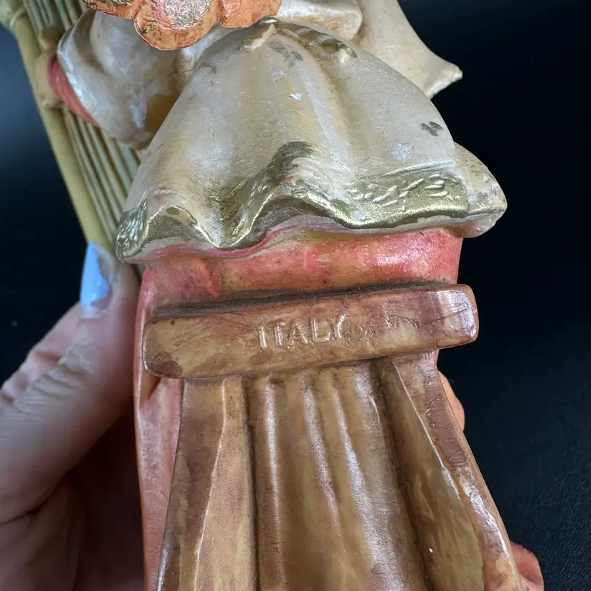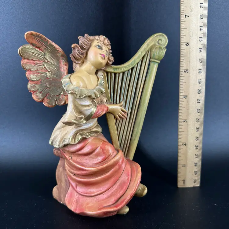 Resin figurine featuring an angel playing a harp. Made in Italy. No chips or cracks. Measures approximately 6.5” tall. Marked “ITALY” see picture.