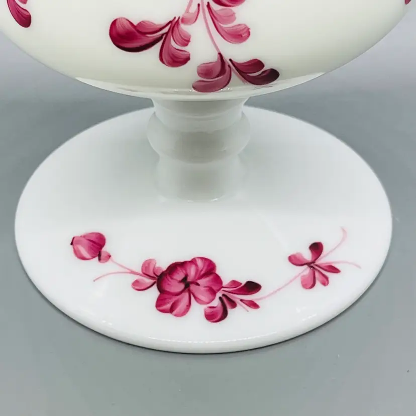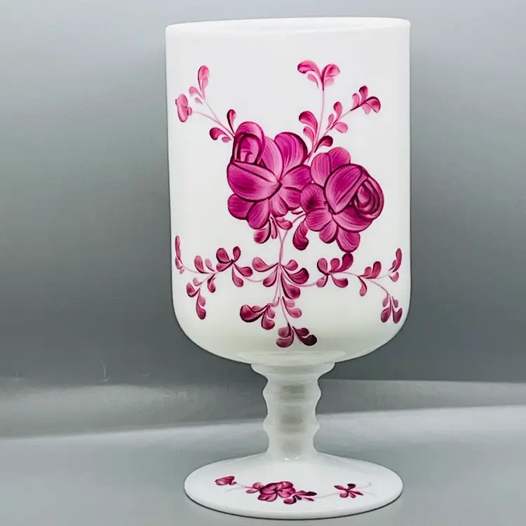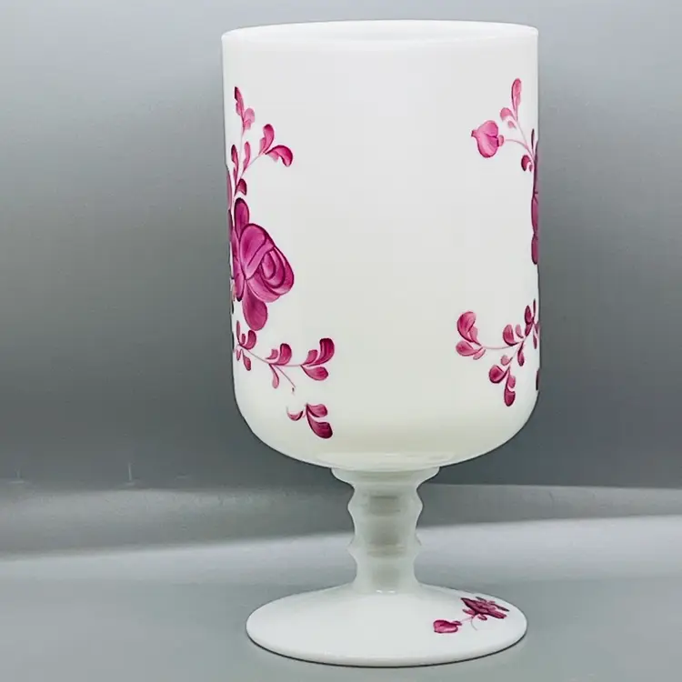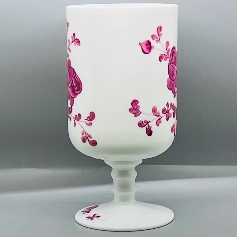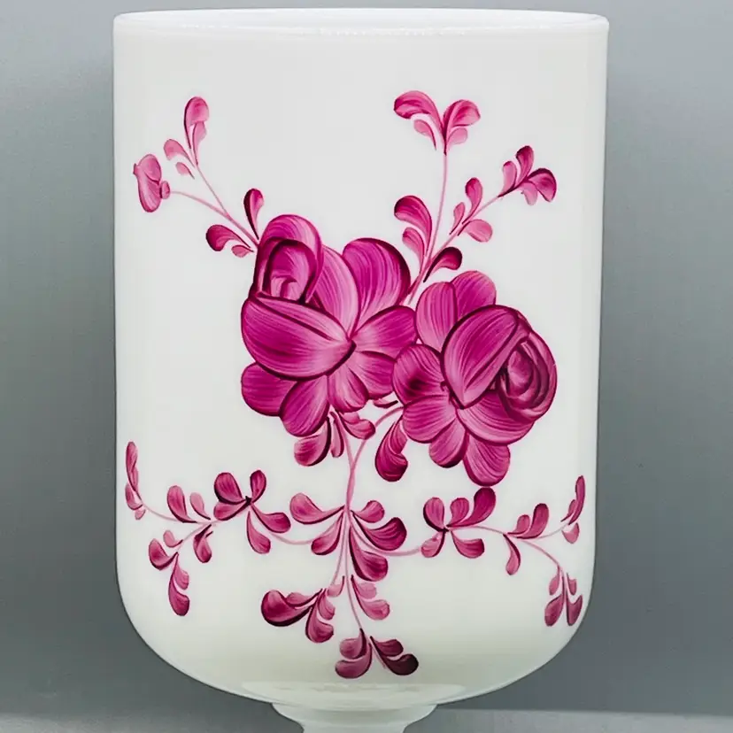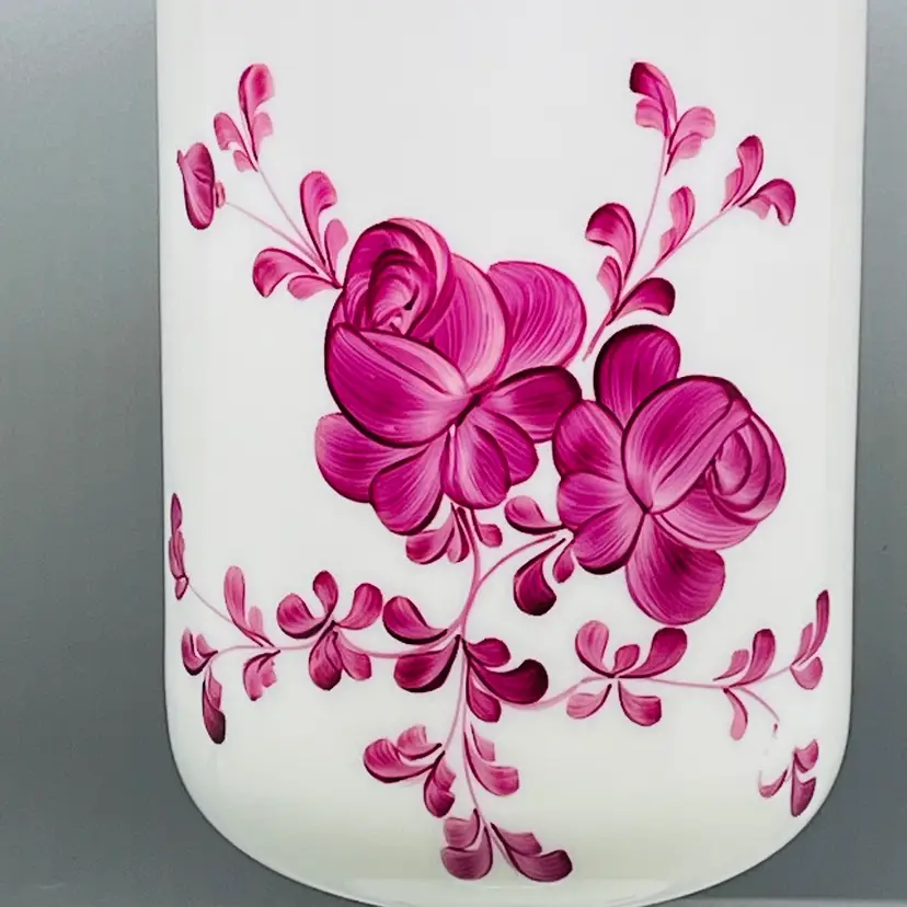 This is a GORGEOUS Italian White Opaline Hand Painted Folk Floral Design Apothecary Jar Vase No Lid.