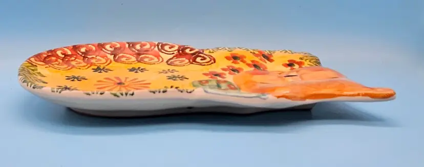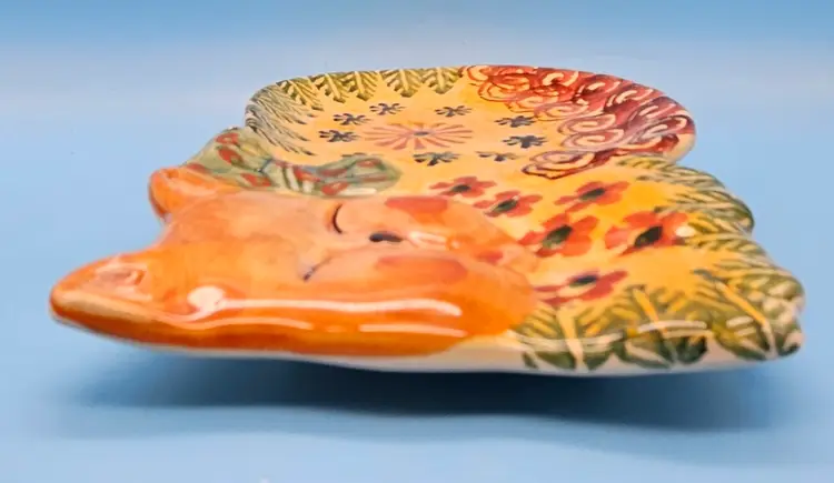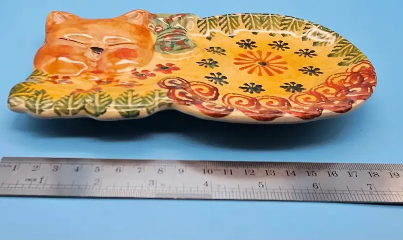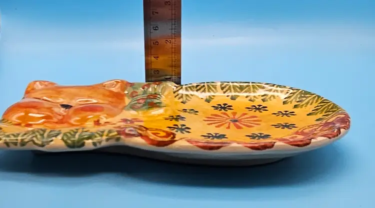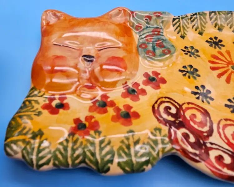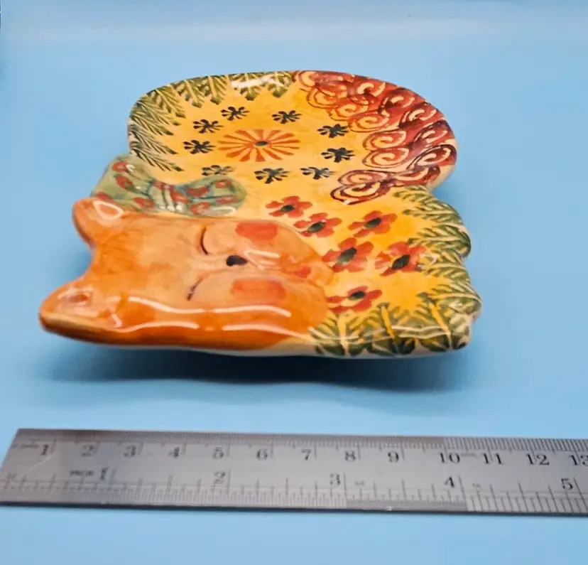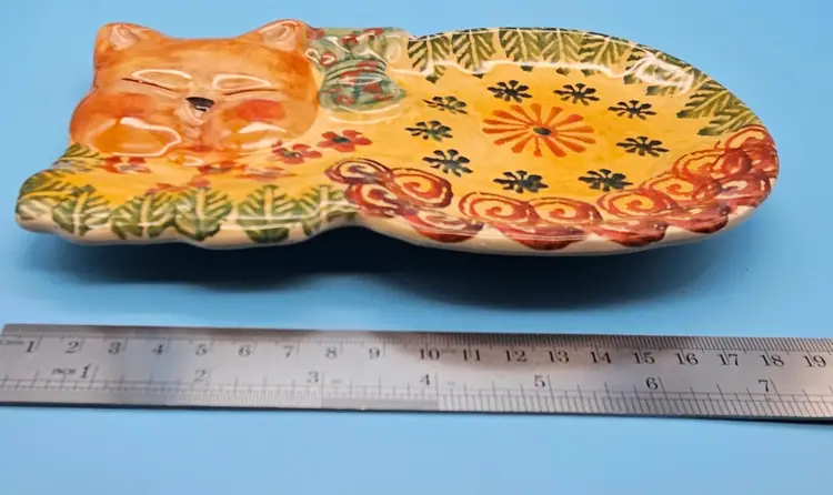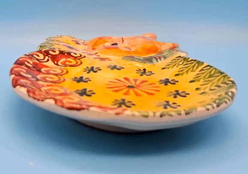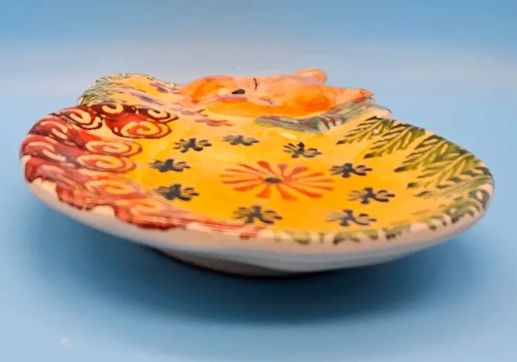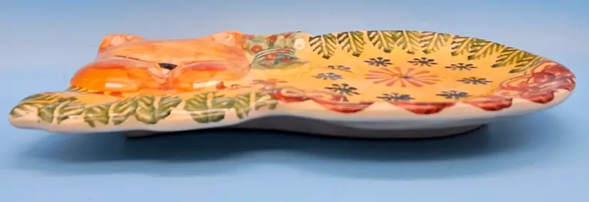 Colorful and vibrant Italian pottery. Sweet and beautiful cat themed hand painted plate/dish. 1"x7"x 4".