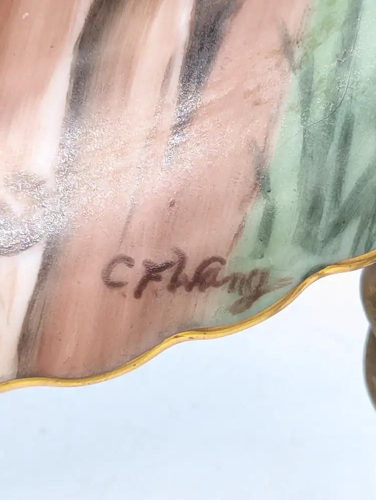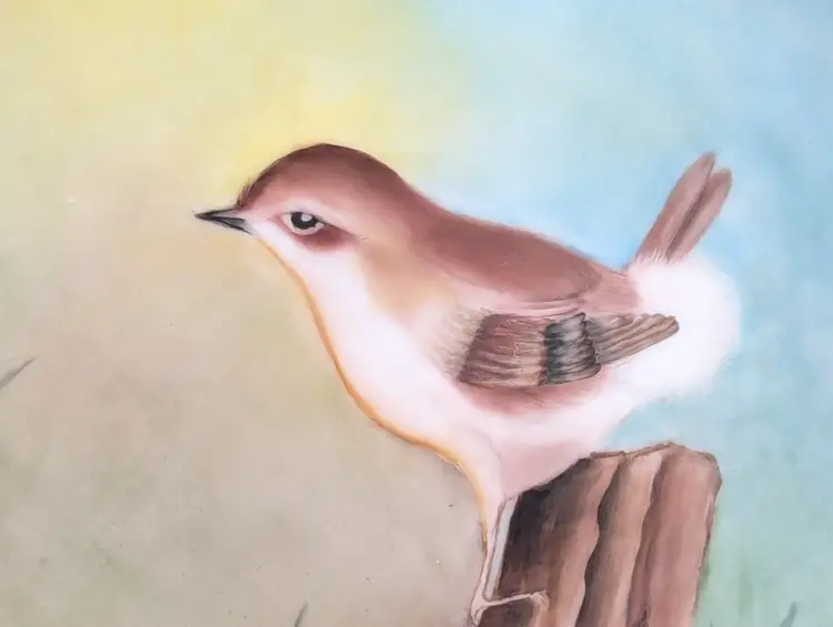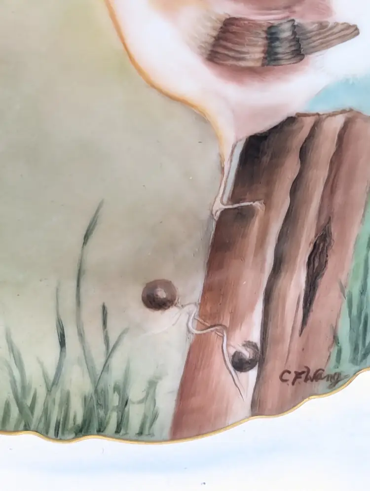 This little bird is absolutely beautiful. Hand painted with the artists signature on the front. C. F. Wang. No stamp on back. No chips or cracks. CH1