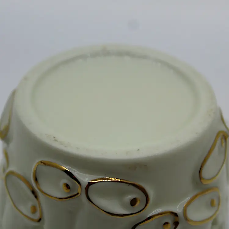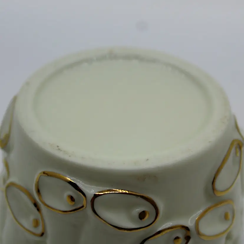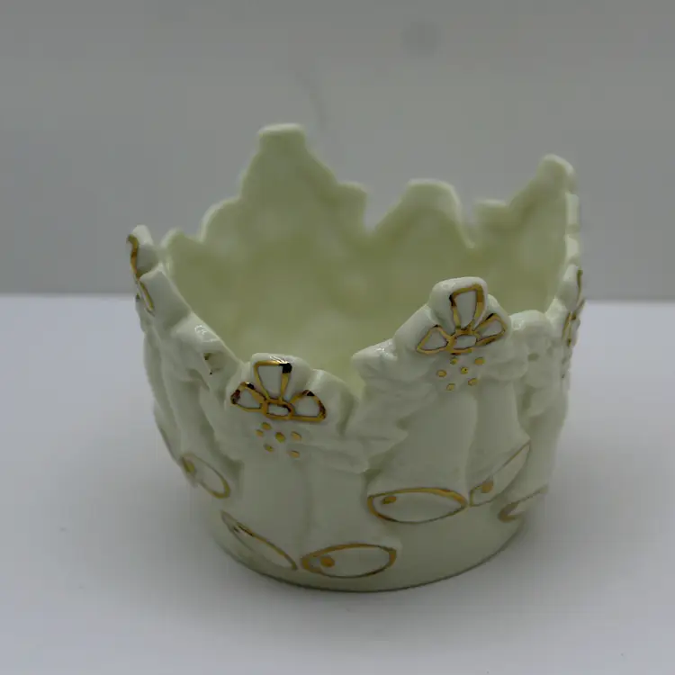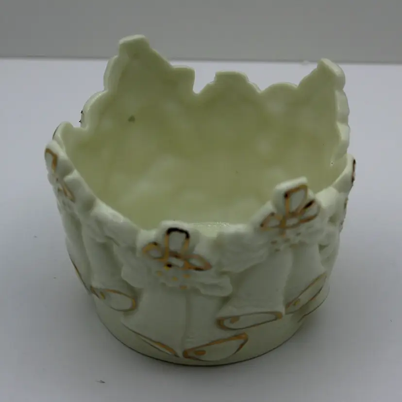 Whether you think this piece features wedding bells or Christmas bells, it's a real charmer. Possibly from the 1940s or 50s, it likely had a paper label for a maker's mark, which has long gone missing. Just 3 inches tall and about 4 inches wide, it will be an elegant accent piece