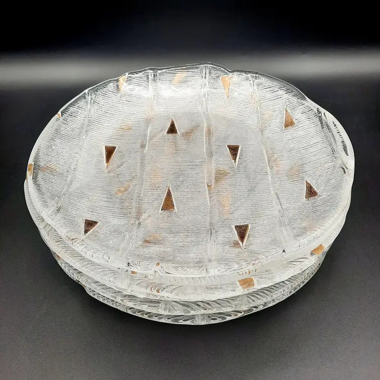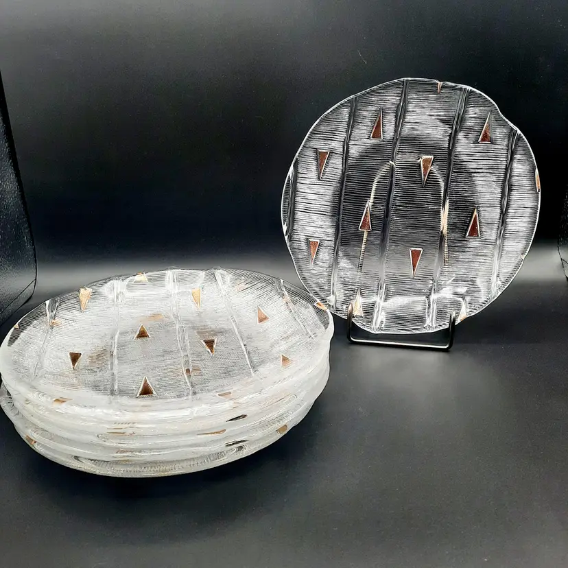 Beautiful plates are 8 1/4"W and weigh over 1 lb each, in great condition with only light scuffs/utensil marks.