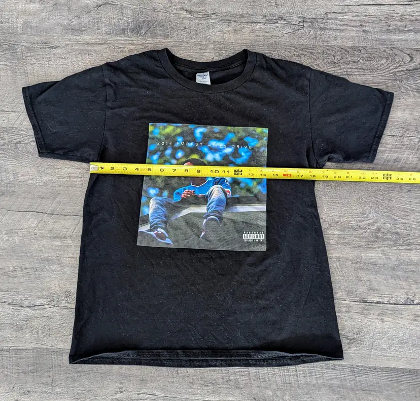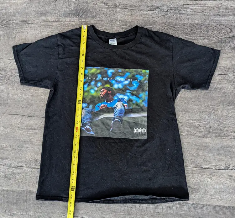 This listing is for a sweet J COLE 2014 Forest Hills Drive Vinyl CD Cover T-shirt Size Medium. Like new Rap Tee. No rips or tears. Measurements approx in inches:
