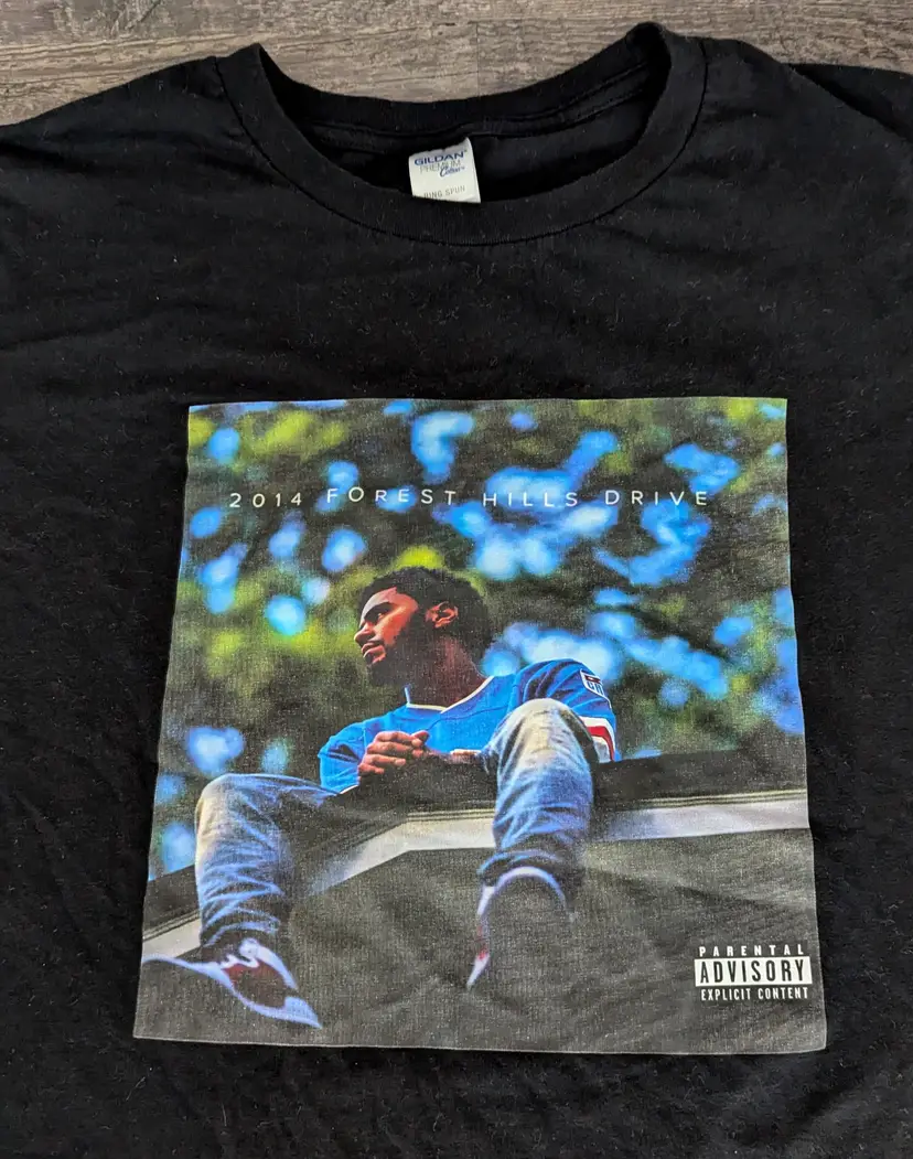 J COLE 2014 Forest Hills Drive Vinyl CD Cover Tshirt Size Medium Rap Tee Hip Hop