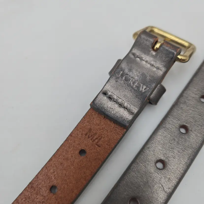 J. Crew Women's Belt M/L Silver Leather Skinny Thin Fits Up To 42"