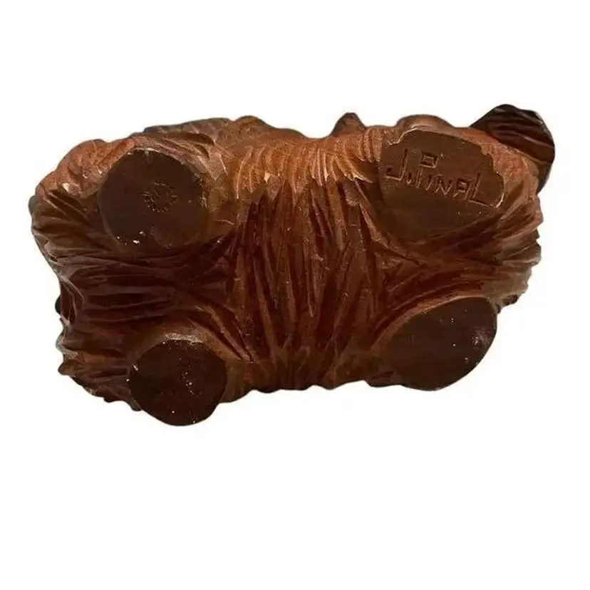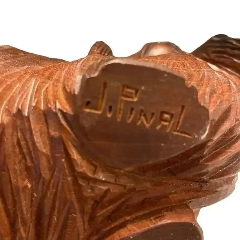 This fantastic vintage carved dog is in excellent condition. It is completely hand carved and signed on the bottom by J. Pinal, a renowned Mexican wood carving artist. I'm not sure what kind of wood it is. It is approximately 6 1/2" long and 4" tall.