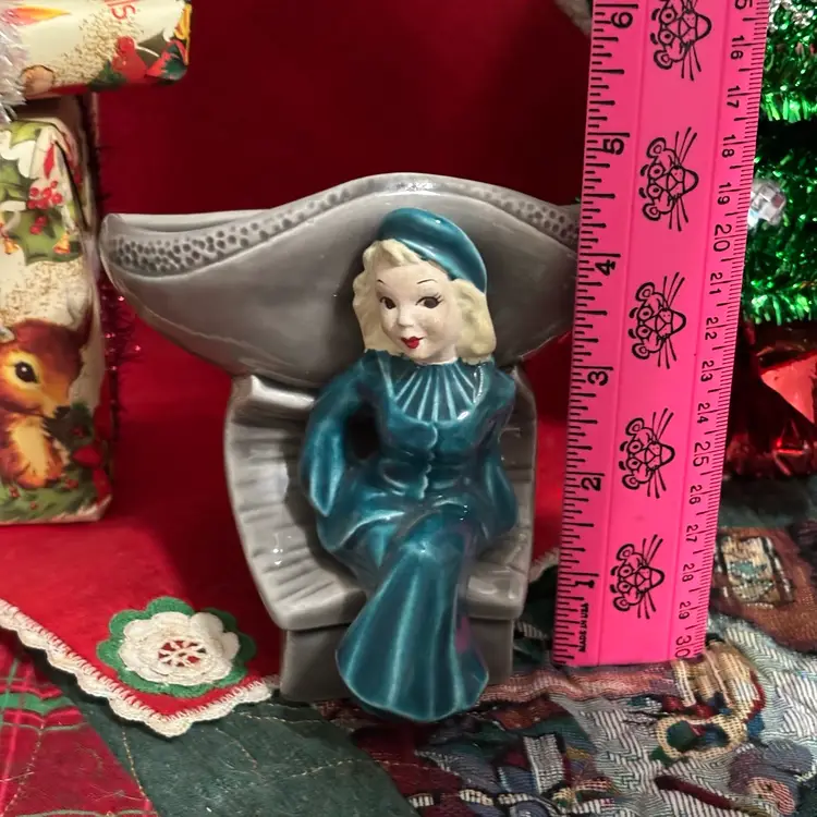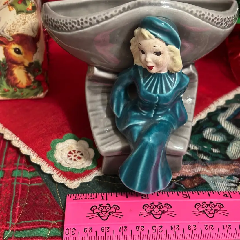 Very nice and unusual Calif. Cope Craft Santa Ana, Calif deco 1930’s style girl ceramic planter/wall pocket. MCM No chips, cracks or paint wear. Beautiful condition.