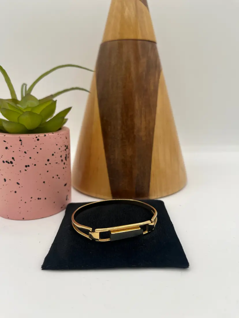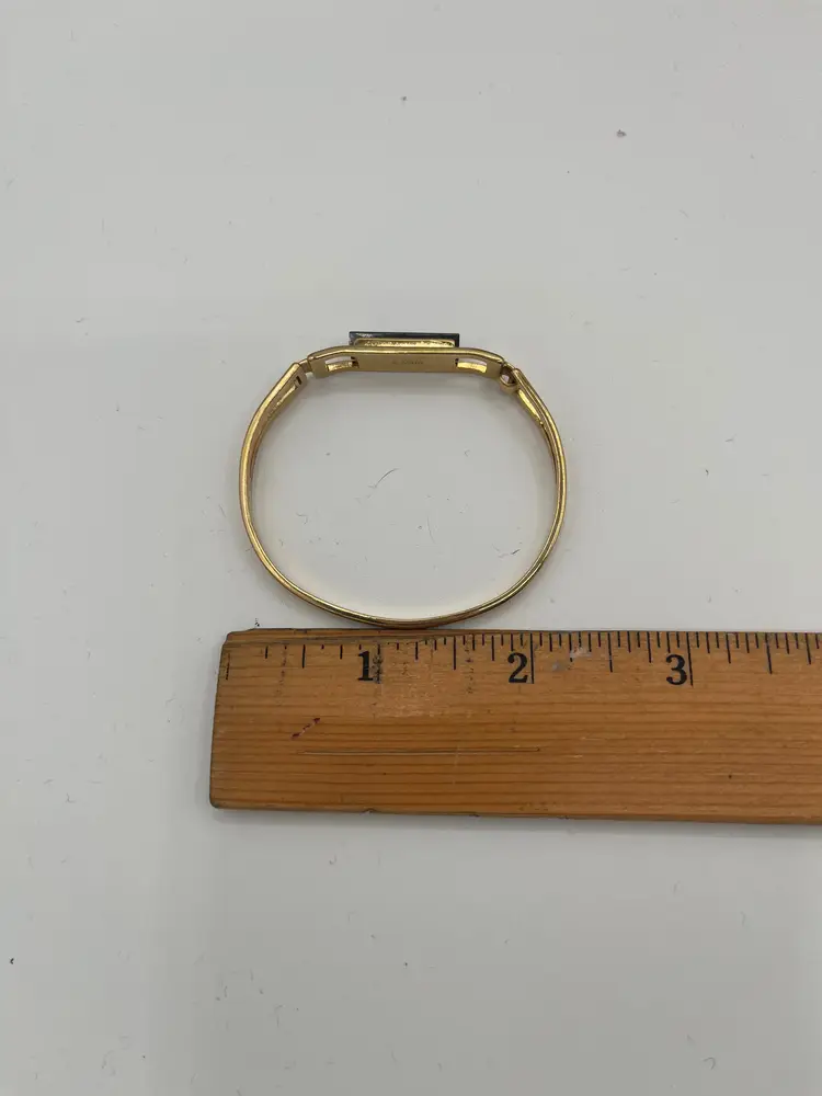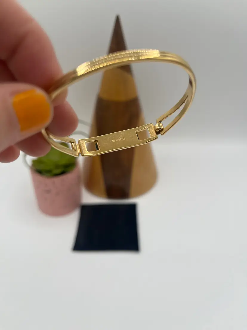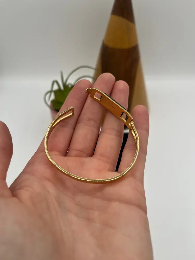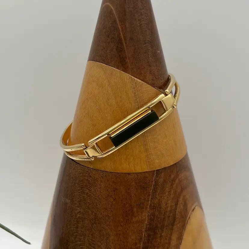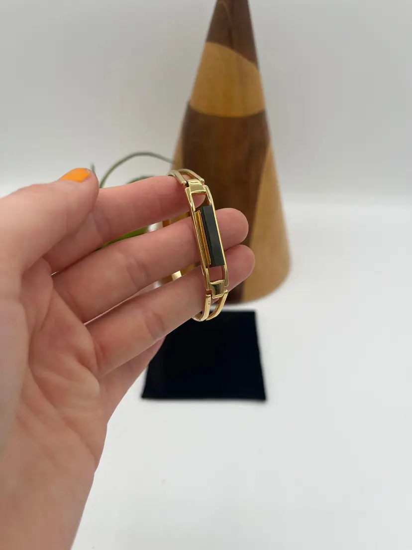#J12 - Marked Avon Gold Tone Vintage "Treasured Jade" Green Stone Bracelet - XSmall