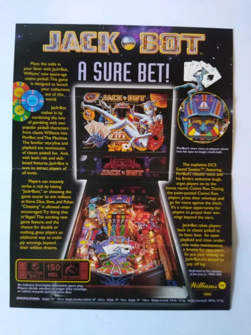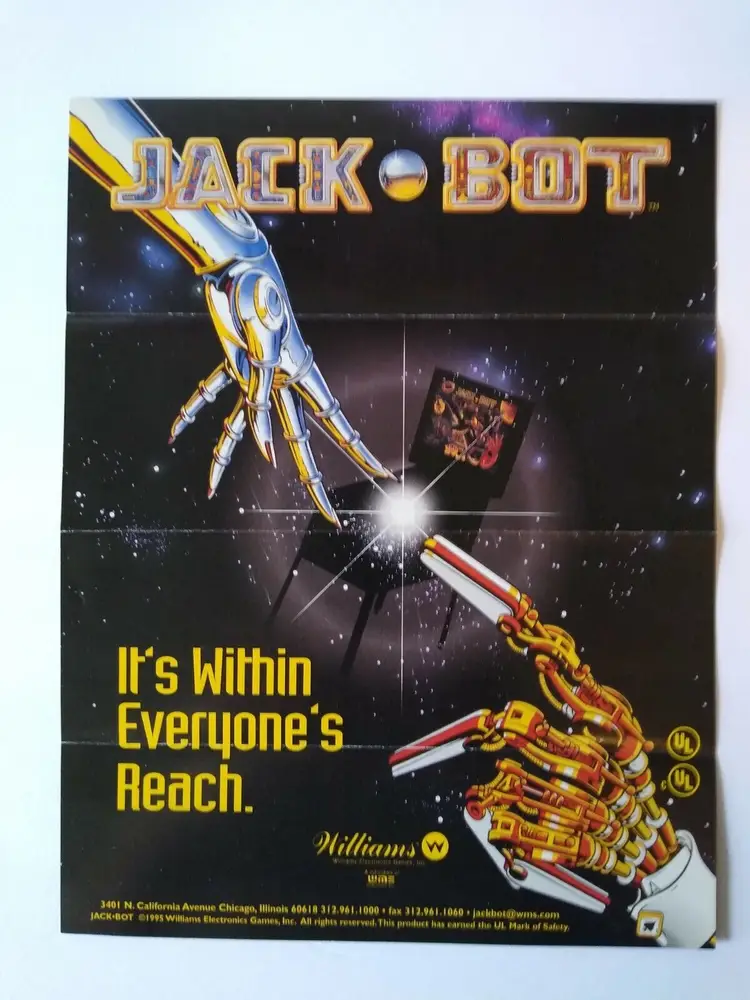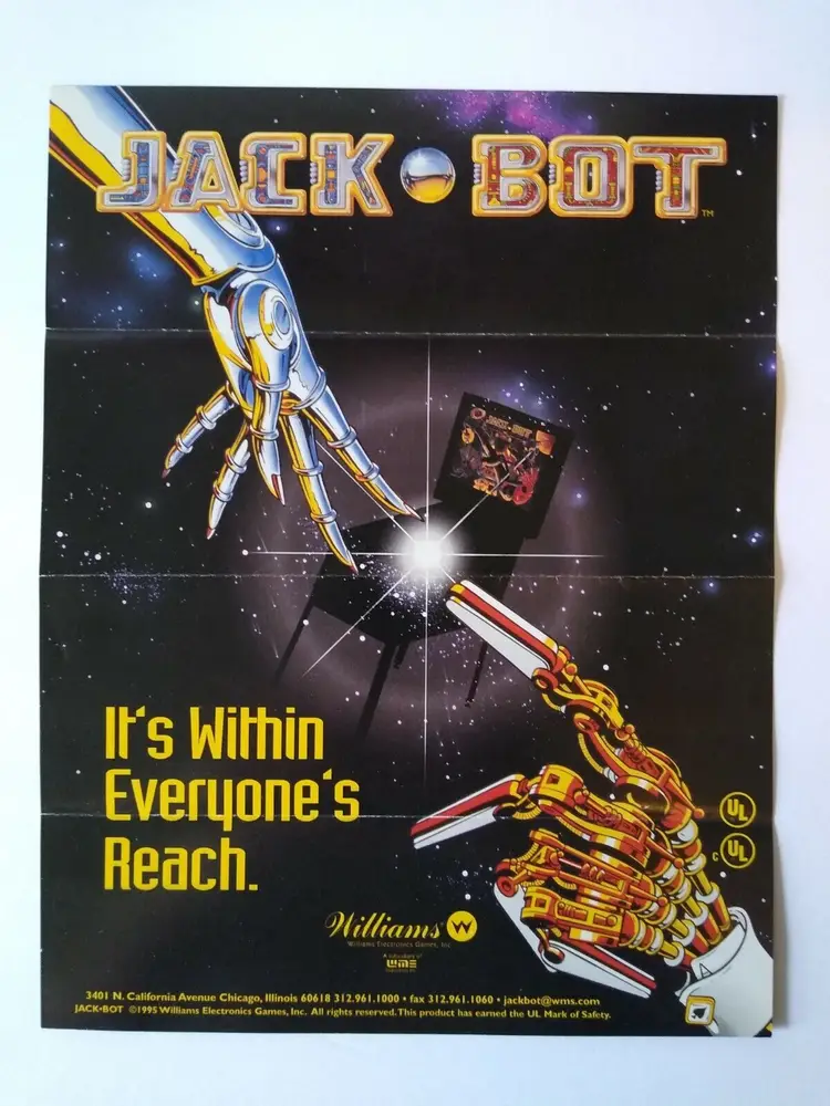 Jack Bot Pinball FLYER Original Artwork Space Age Promo 1995 Robots Folds
