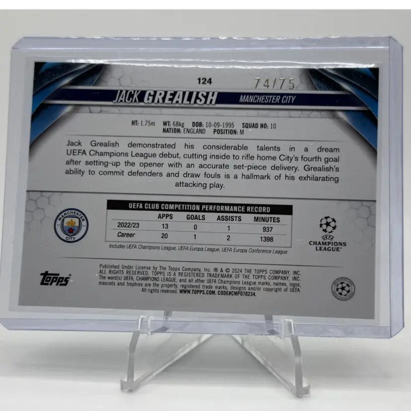 Jack Grealish 2023-2024 Topps UEFA Champions League Icy Blue Foil 74/75 Manchester City. Shipping is $1 for the first card, +$0.50 for additional cards, and ships PWE within 1-2 days.