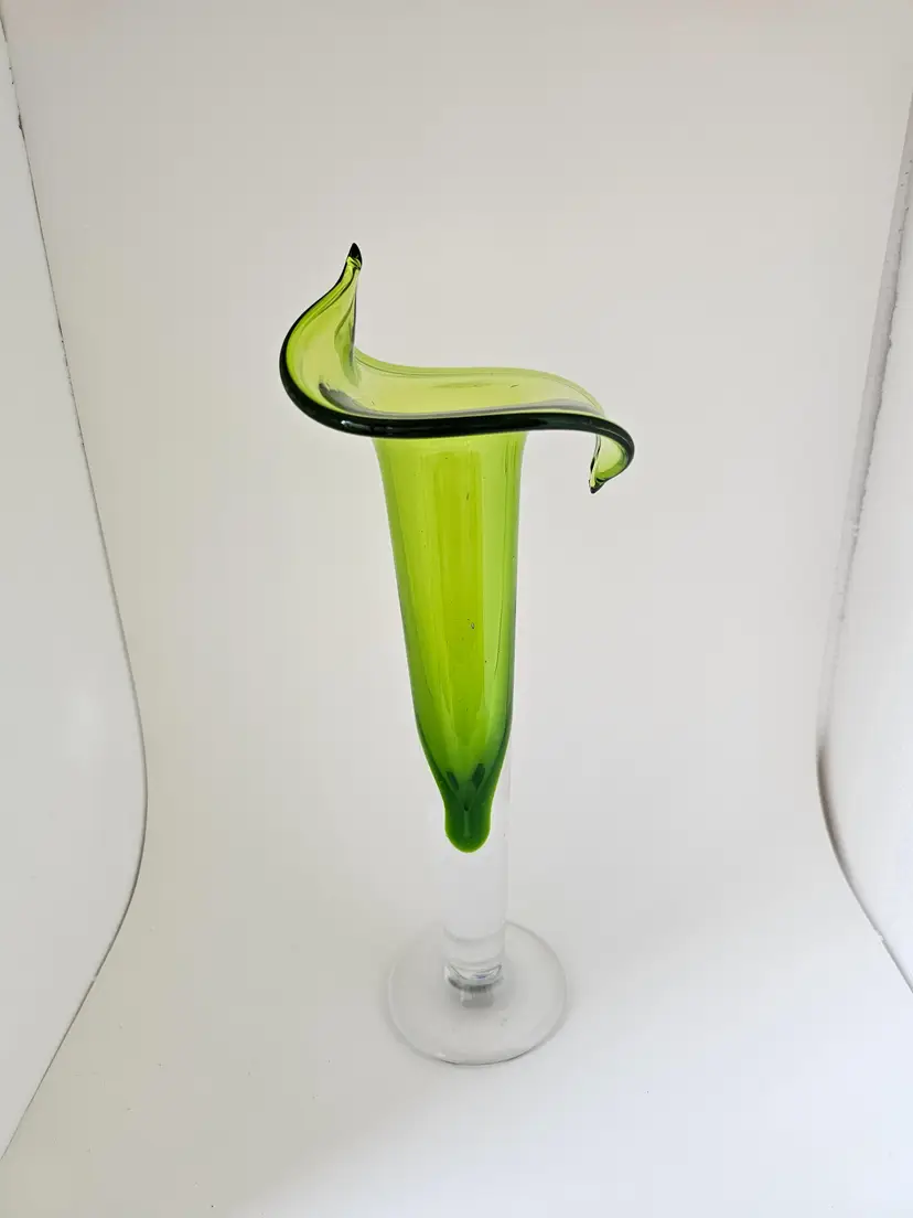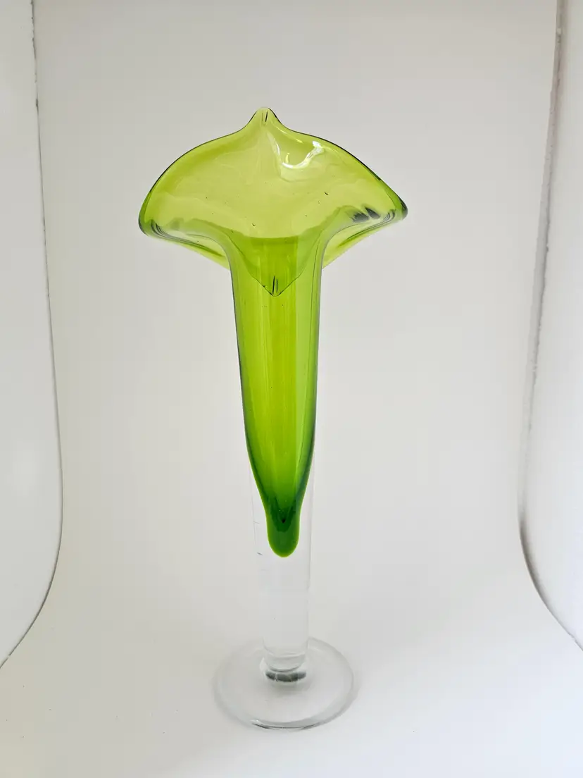 Gorgeous green glass Jack in the Pupit vase. No markings, no chips or cracks. 11.25"H x 5"W