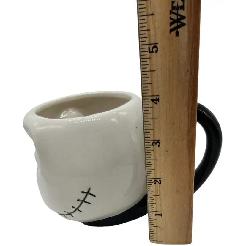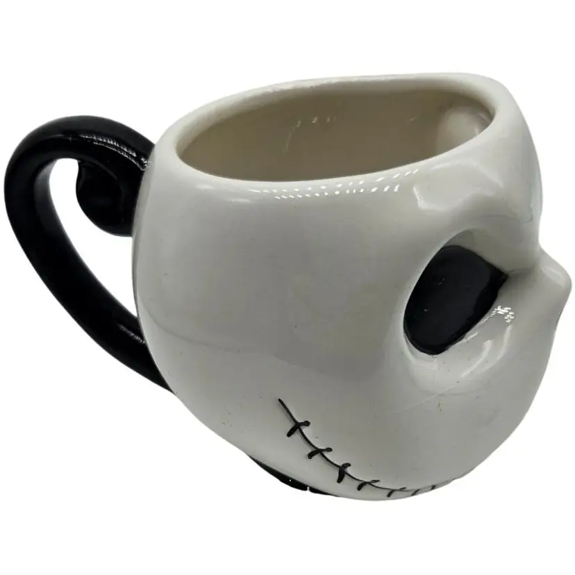 Unique Jack Skellington mug. Features a black handle. Perfect for fans.