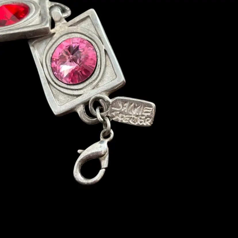 Silver tone with colourful glass accents. Slight wear to metal 7”