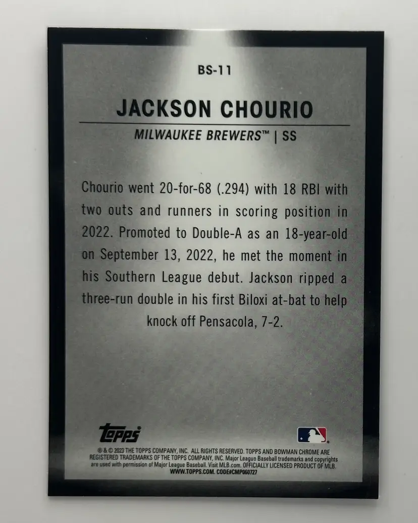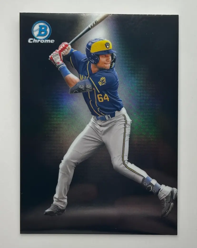 Check out this Bowman Chrome card featuring a promising Milwaukee Brewers prospect in action. A must-have for any Brewers fan!