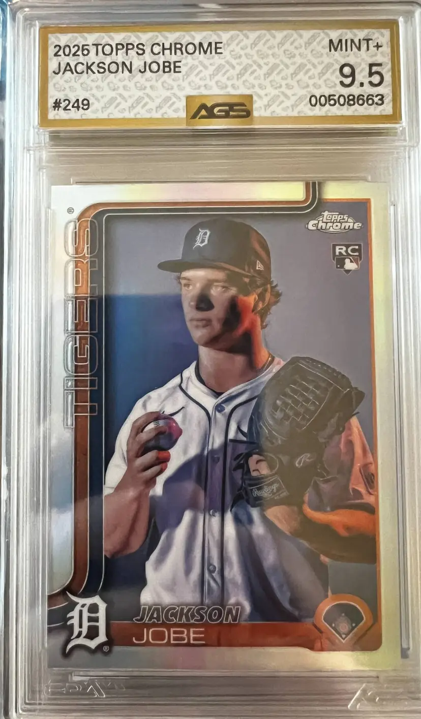 Check out this mint condition Jackson Jobe rookie card from the 2026 Topps Chrome series, graded 9.5 by AGS. A must-have for Tigers fans and collectors!