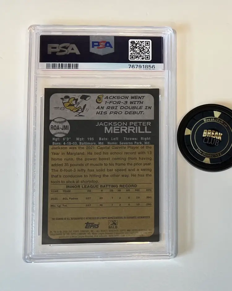 2022 Topps Heriatge Minors on card prospect auto of 2024 Rookie of the Year contender $4.50 shipping via BMWT (stacks with other listings)